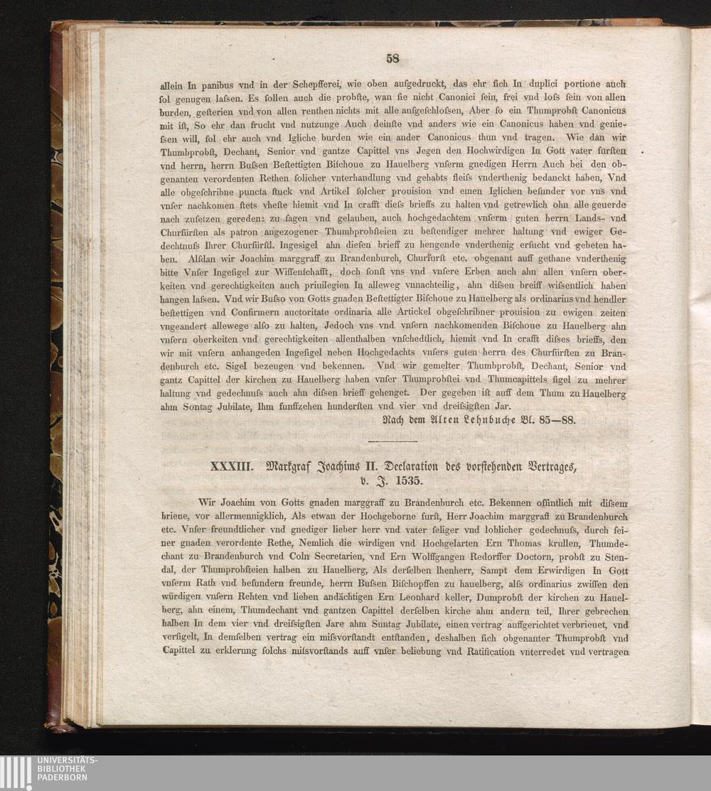XXXIII. Markgraf Joachims II. Declaration des vorstehenden Vertrages, v. J. 1535[...]
