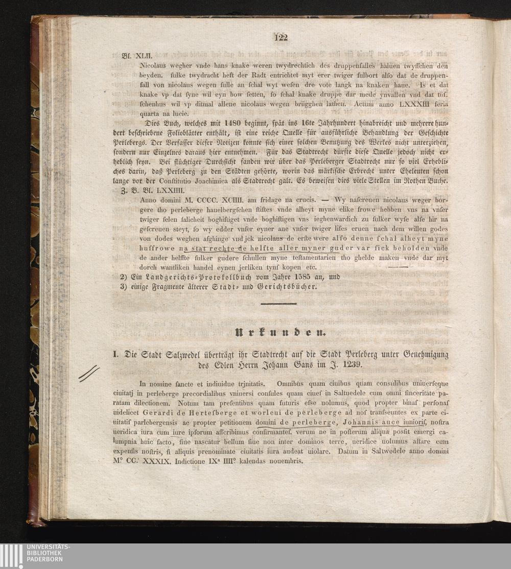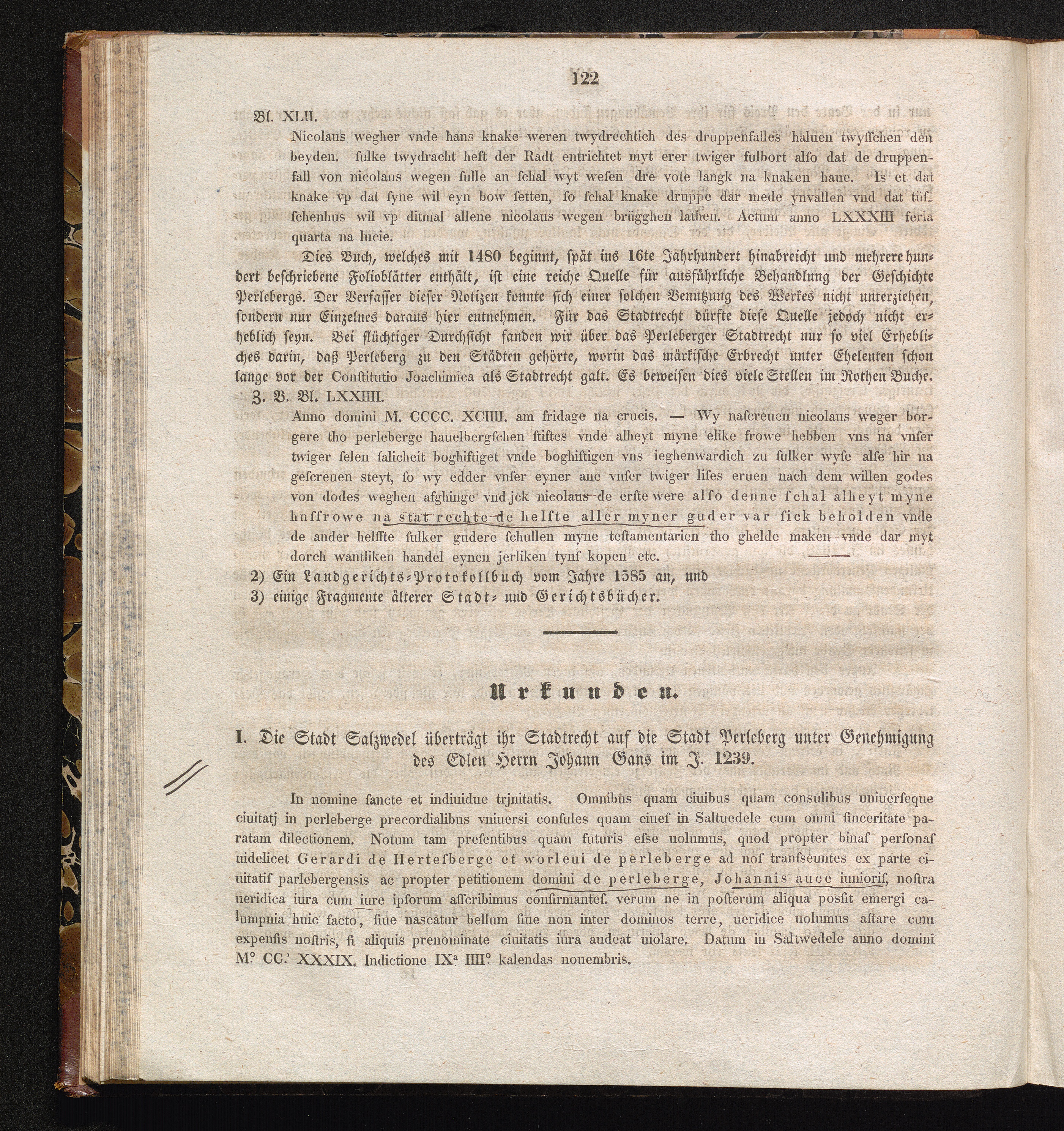 I. Die Stadt Salzwedel überträgt ihr Stadtrecht auf die Stadt Perleberg unter Genehmigung[...]