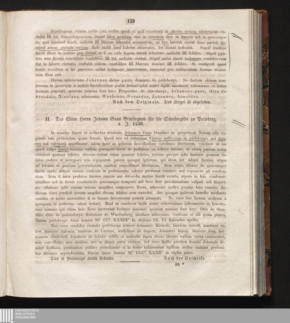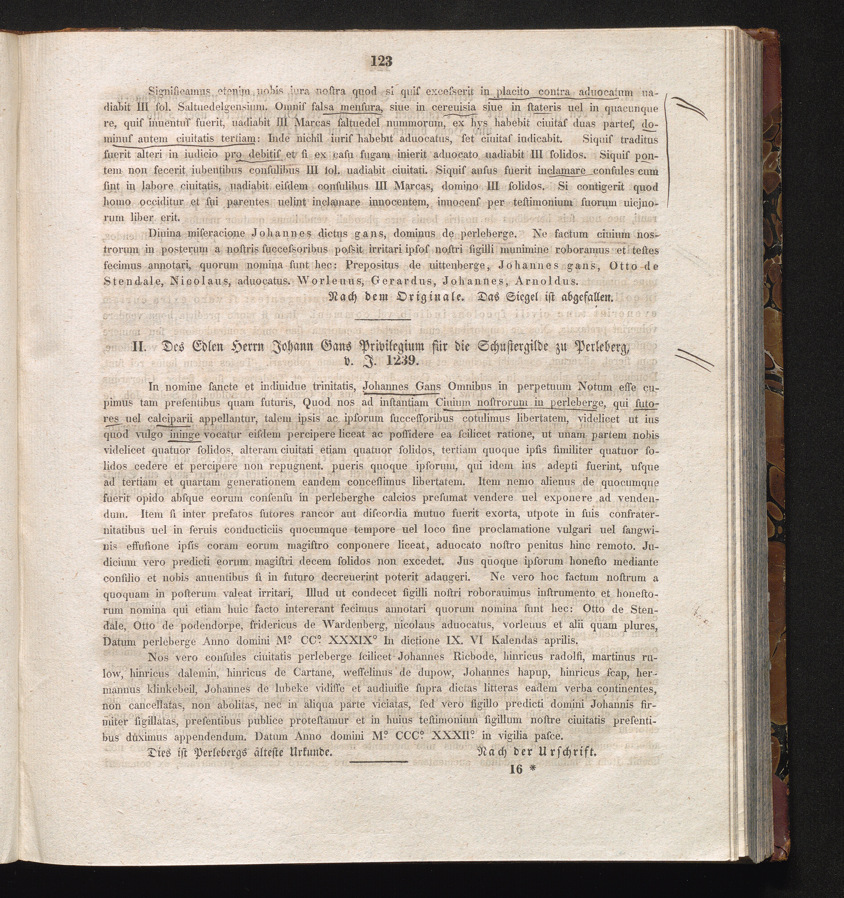 II. Des Edlen Herrn Johann Gans Privilegium für die Schustergilde zu Perleberg, v.[...]
