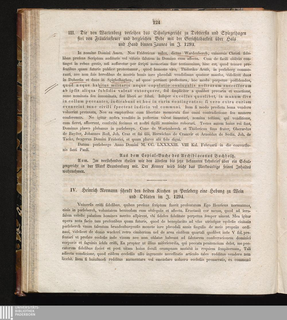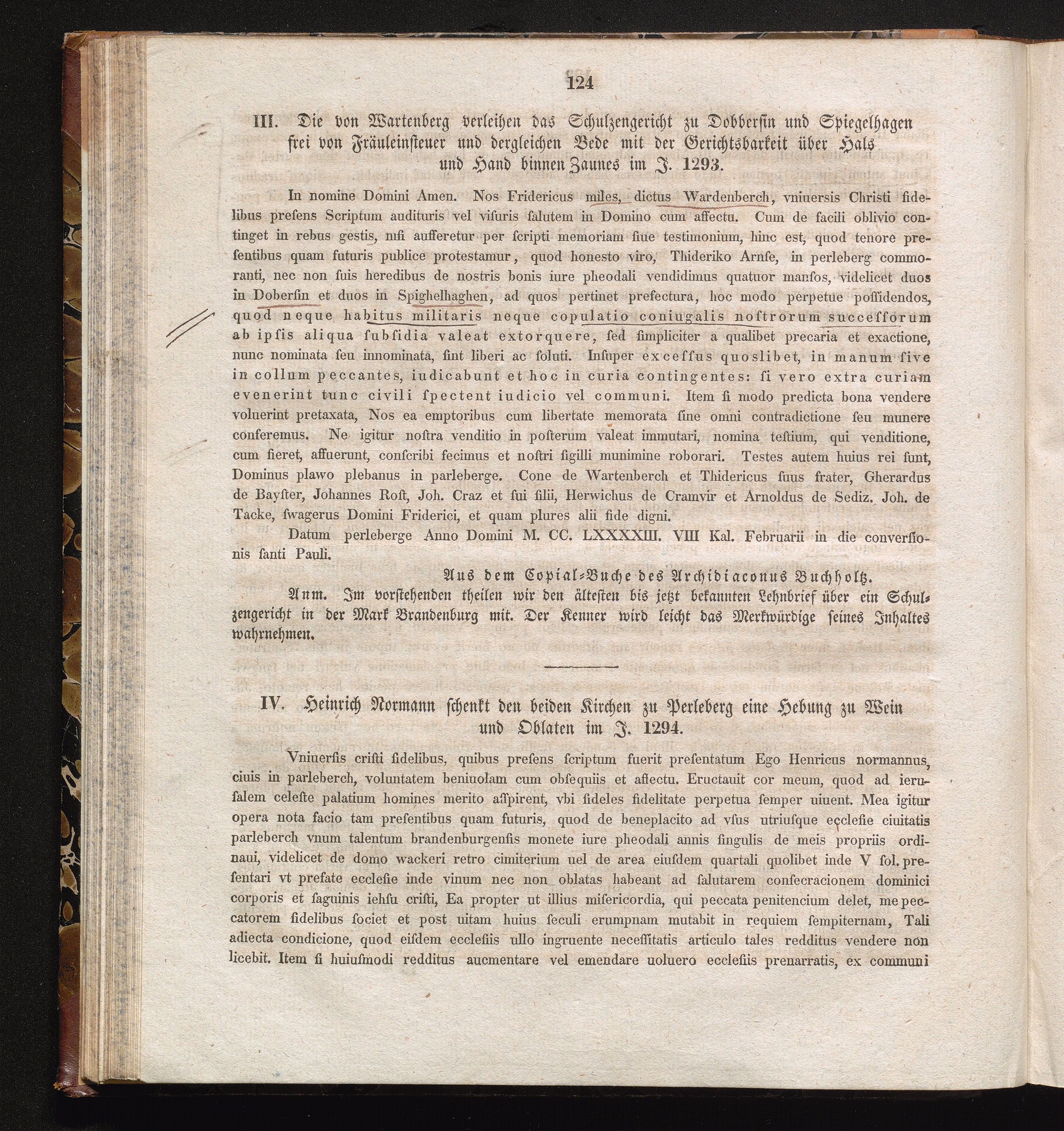 IV. Heinrich Normann schenkt den beiden Kirchen zu Perleberg eine Hebung zu Wein[...]