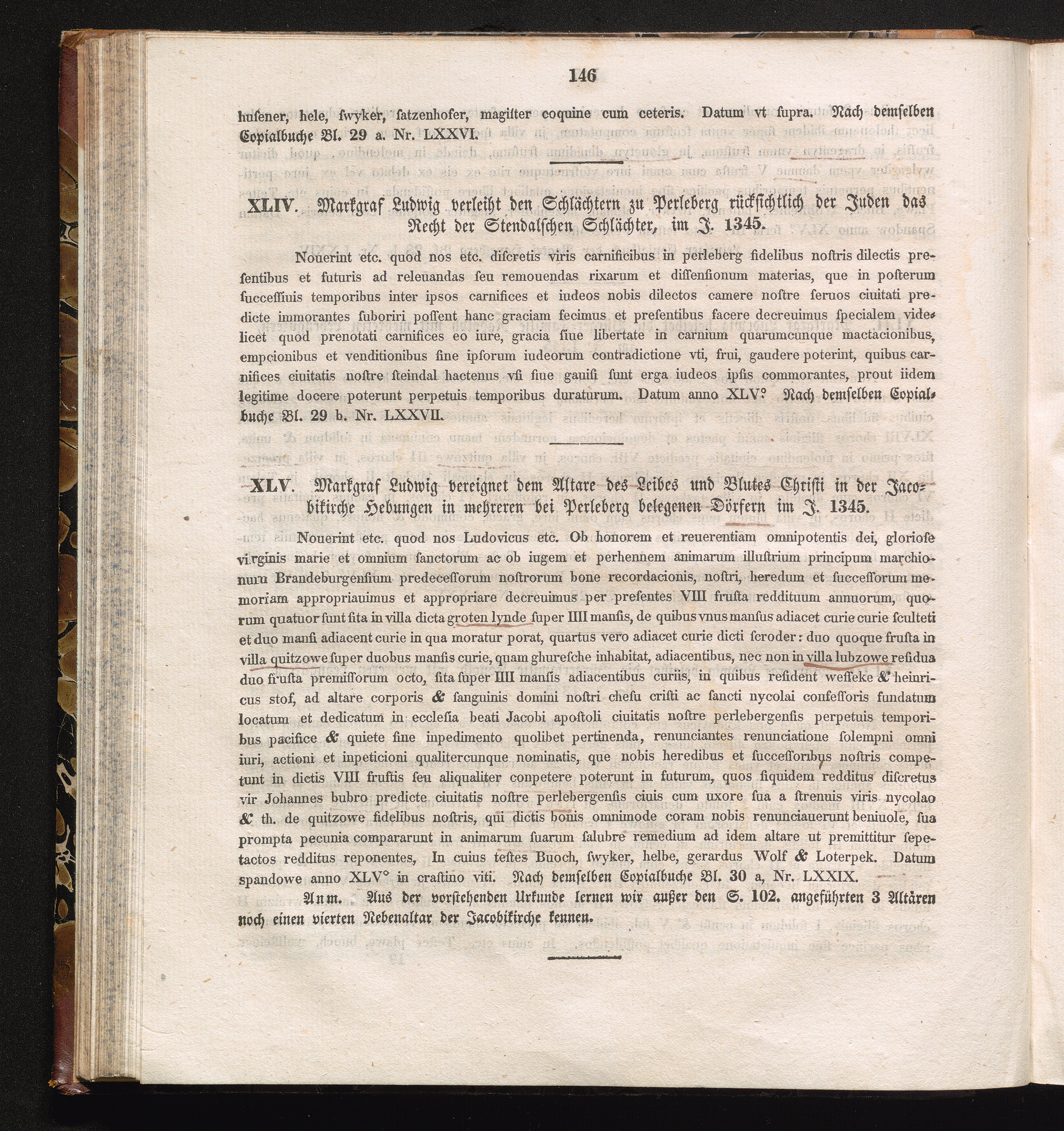 XLV. Markgraf Ludwig vereignet dem Altare des Leibes und Blutes Christi in der Jacobikirche[...]