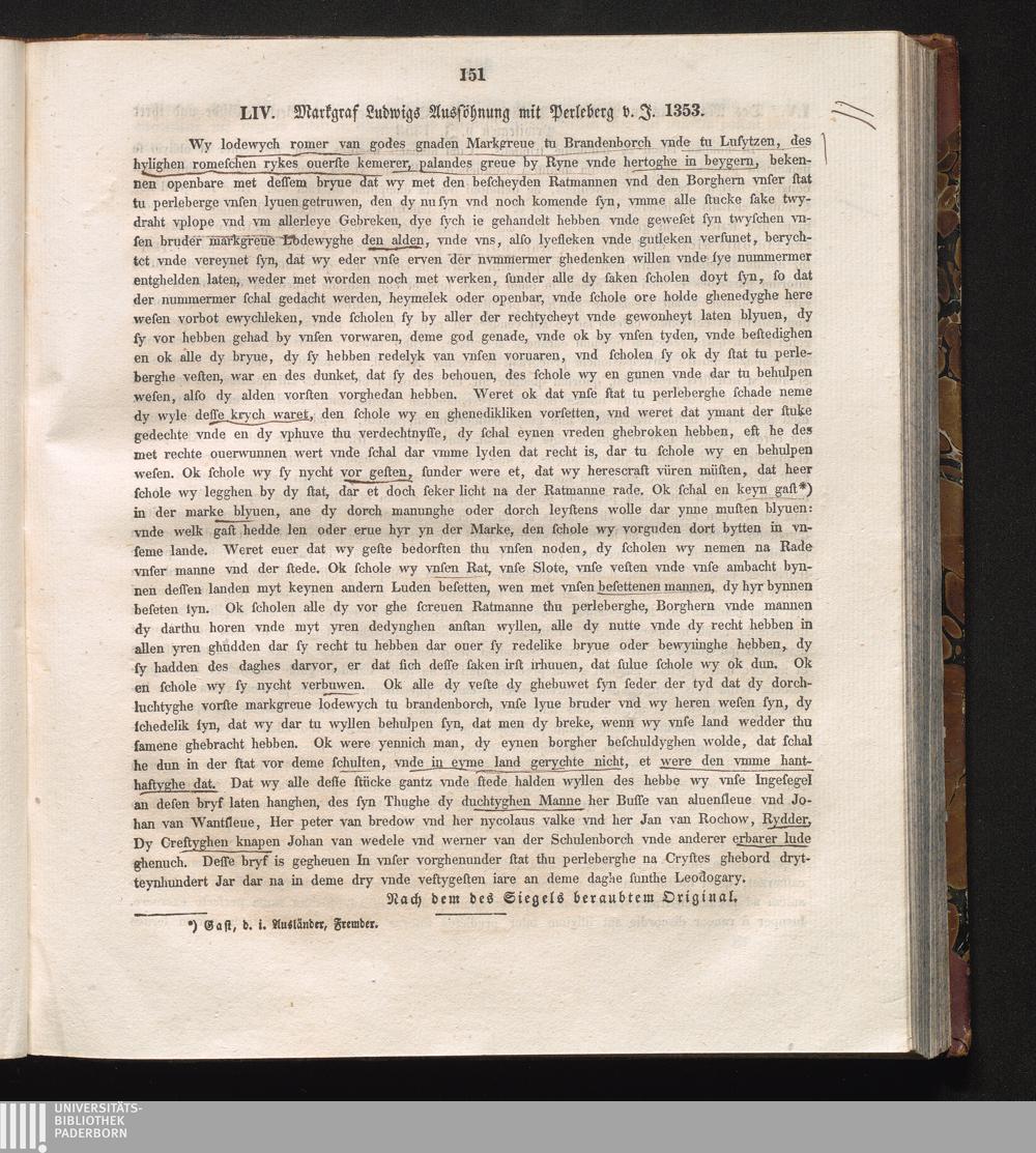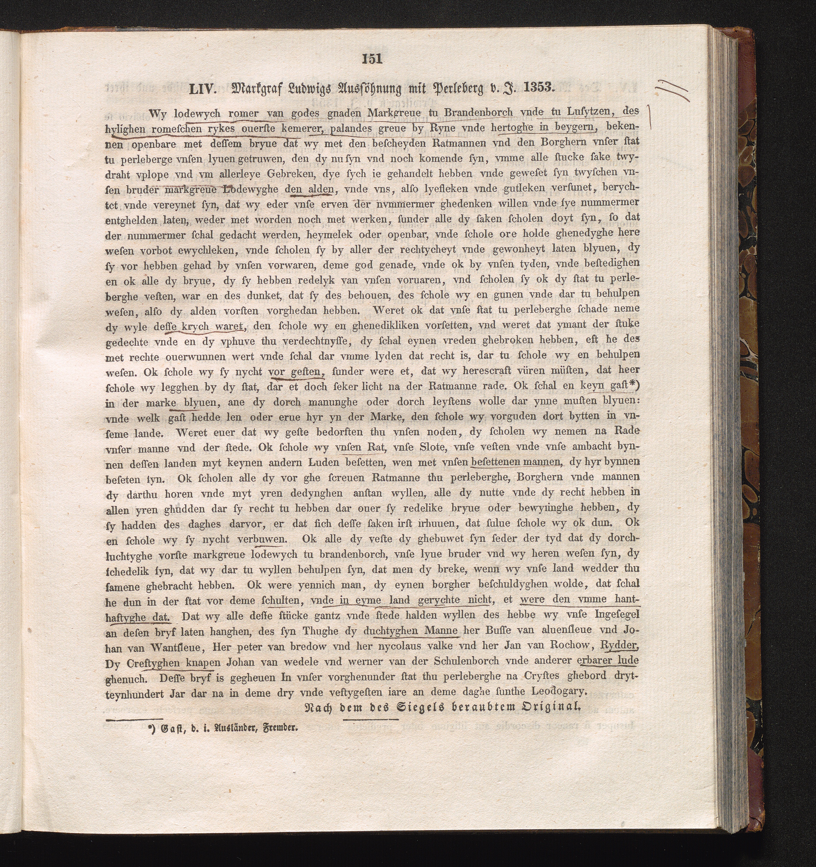 LIV. Markgraf Ludwigs Aussöhnung mit Perleberg v. J. 1353.
