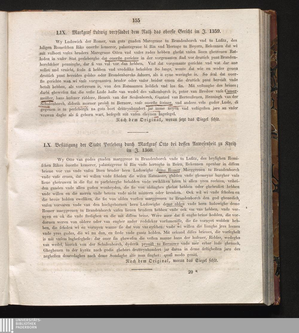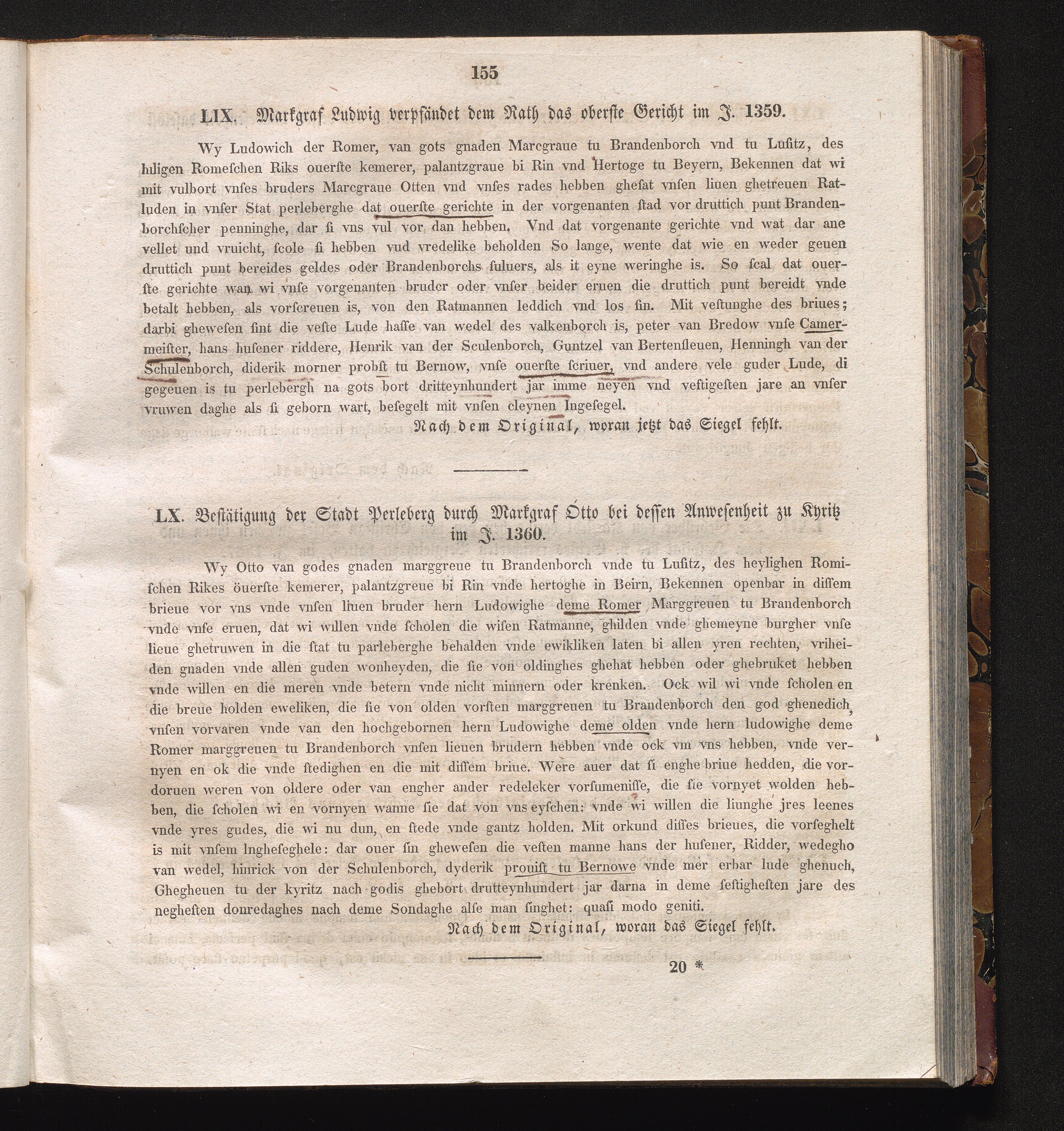 LX. Bestätigung der Stadt Perleberg durch Markgraf Otto bei dessen Anwesenheit zu[...]
