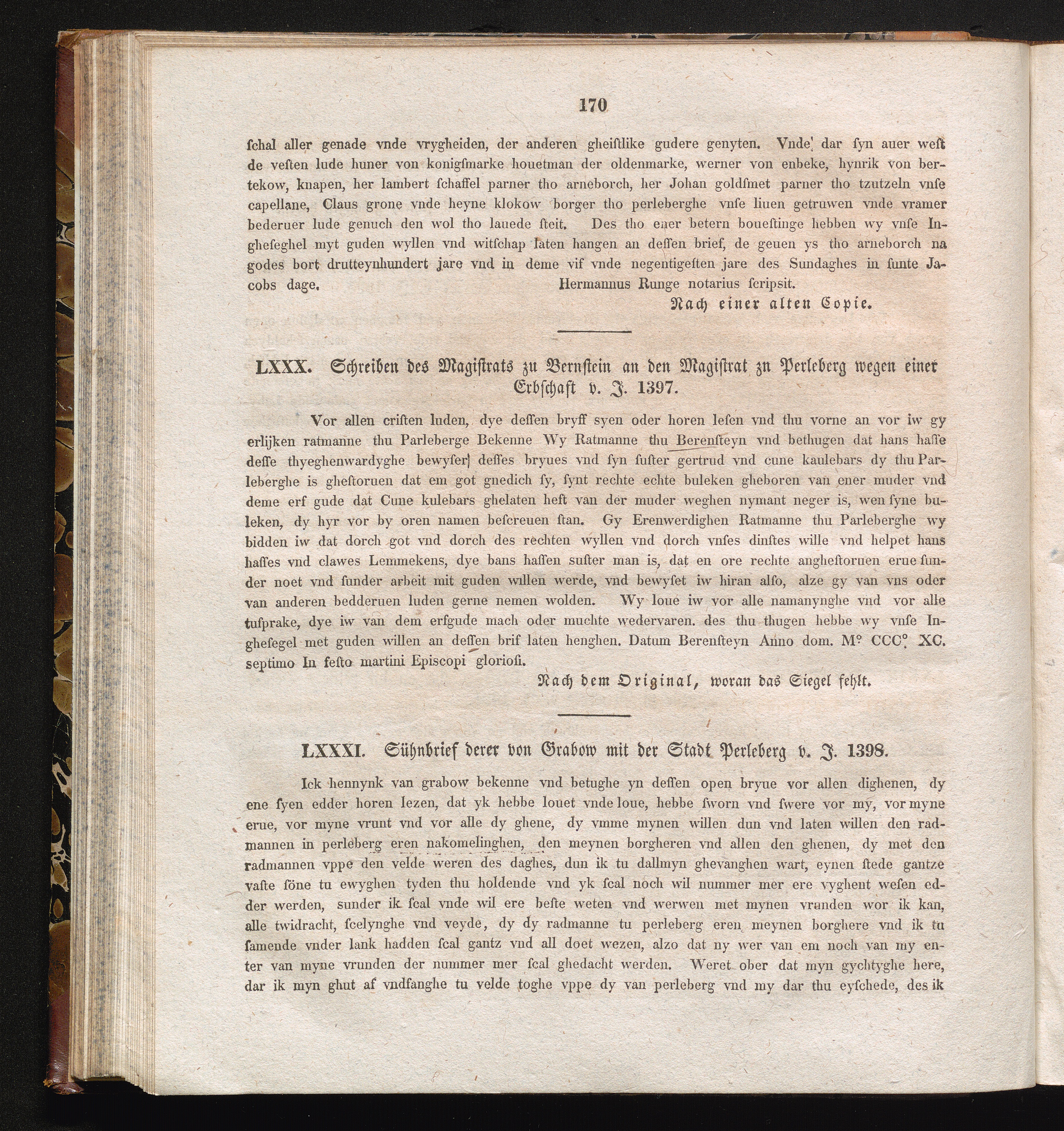 LXXXI. Sühnbrief derer von Grabow mit der Stadt Perleberg v. J. 1398.