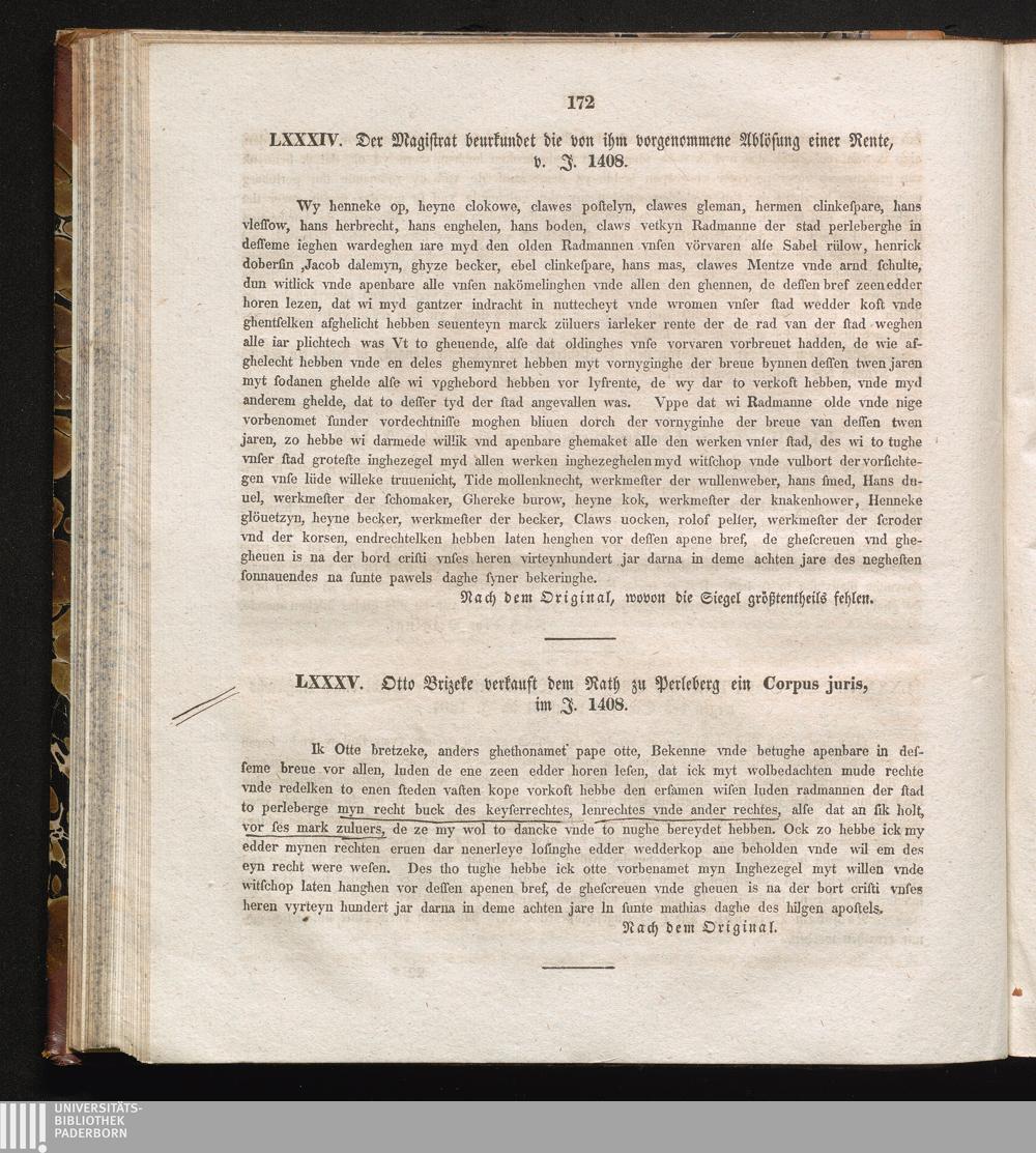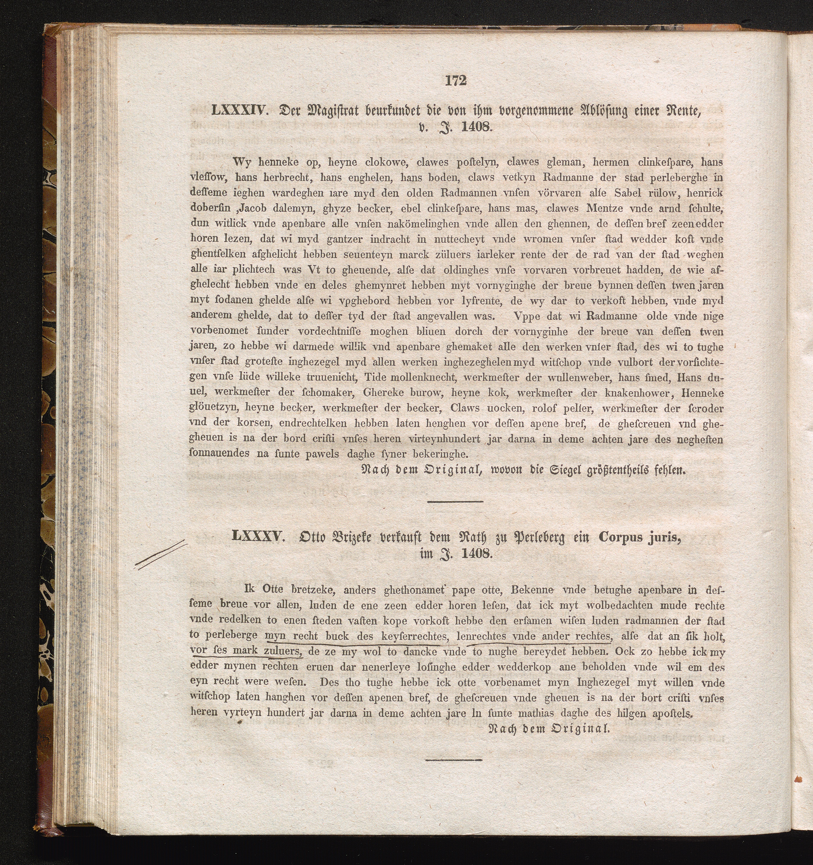 LXXXV. Otto Brizeke verkauft dem Rath zu Perleberg ein Corpus juris, im J. 1408.