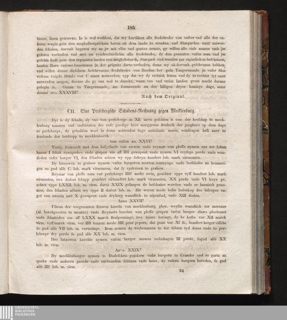 CII. Eine Perlebergsche Schadens-Rechnung gegen Mecklenburg.