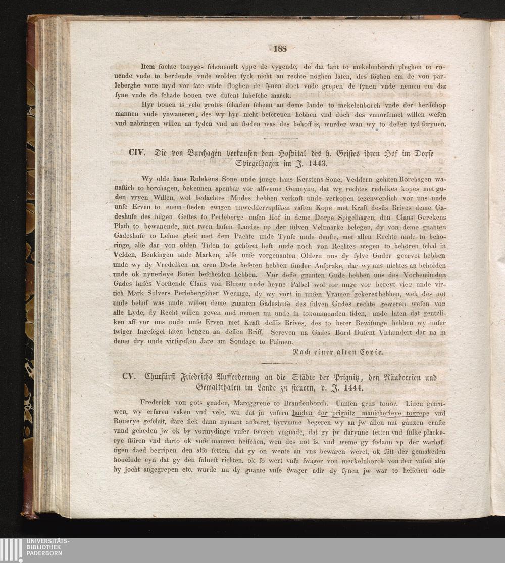 CV. Churfürst Friedrichs Aufforderung an die Städte der Prignitz, den Räubereien[...]