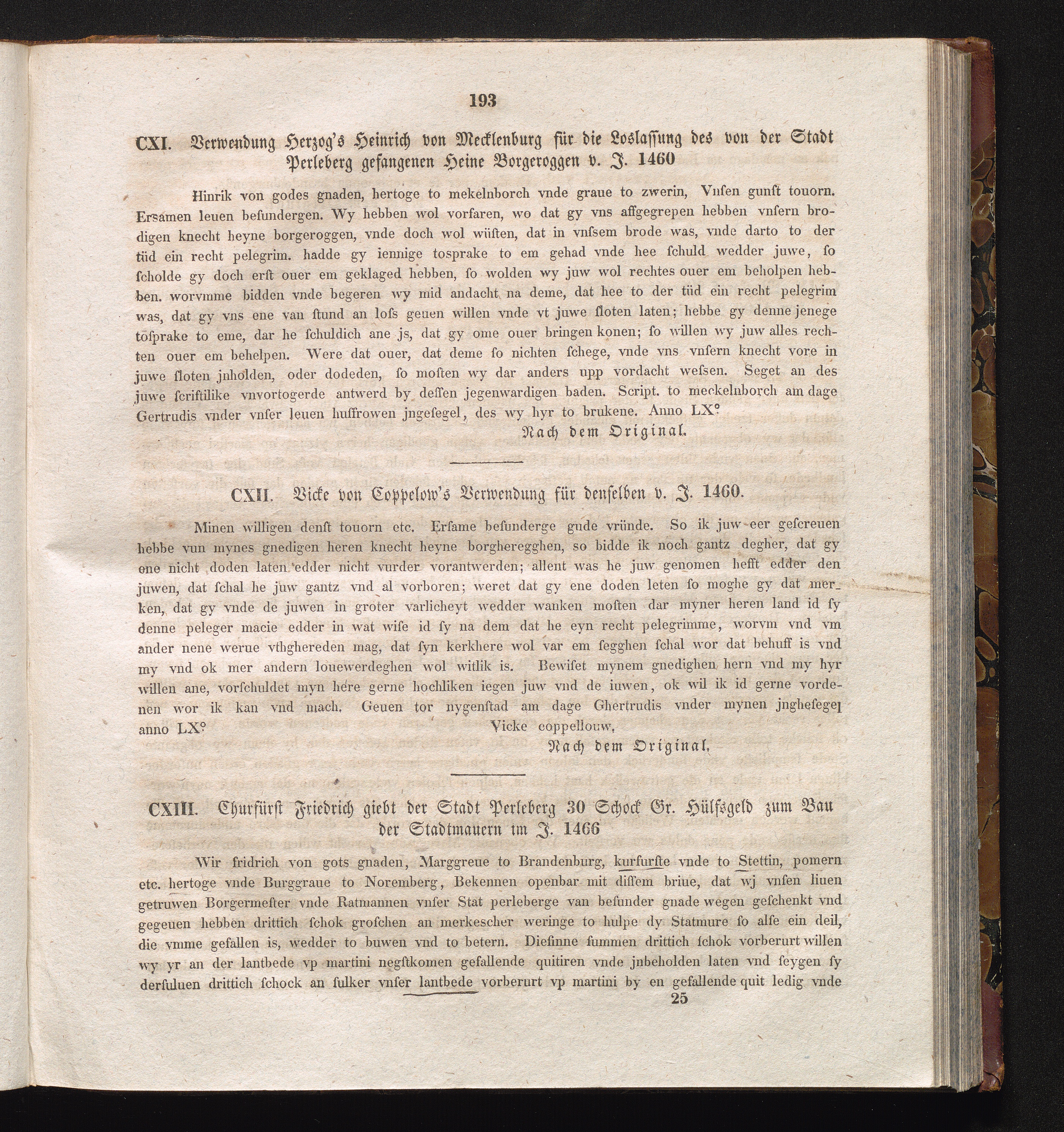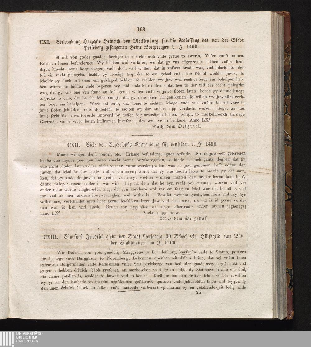 CXIII. Churfürst Friedrich giebt der Stadt Perleberg 30 Schock Gr. Hülfsgeld zum[...]