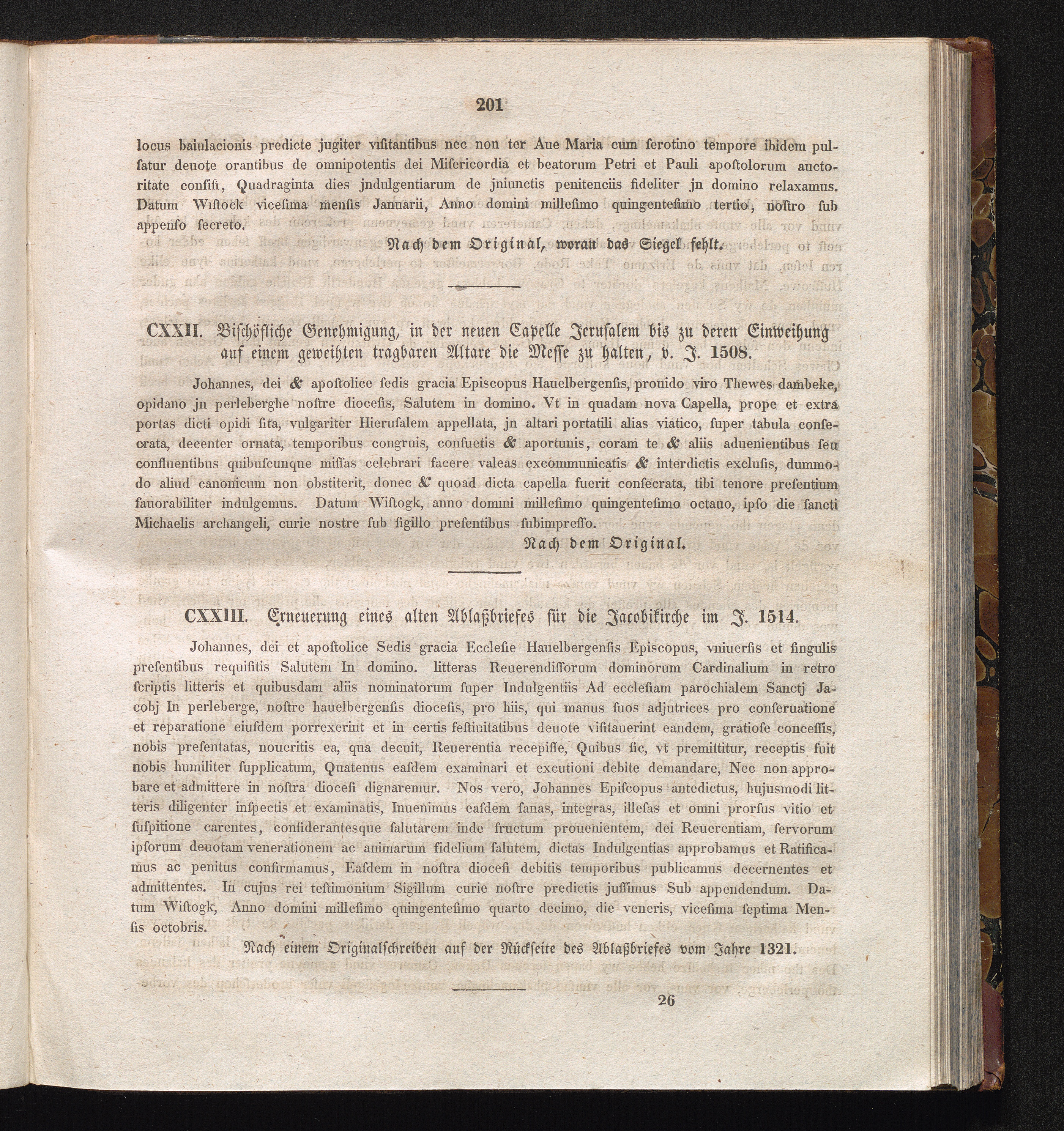 CXXIII. Erneuerung eines alten Ablaßbriefes für die Jacobikirche im J. 1514.