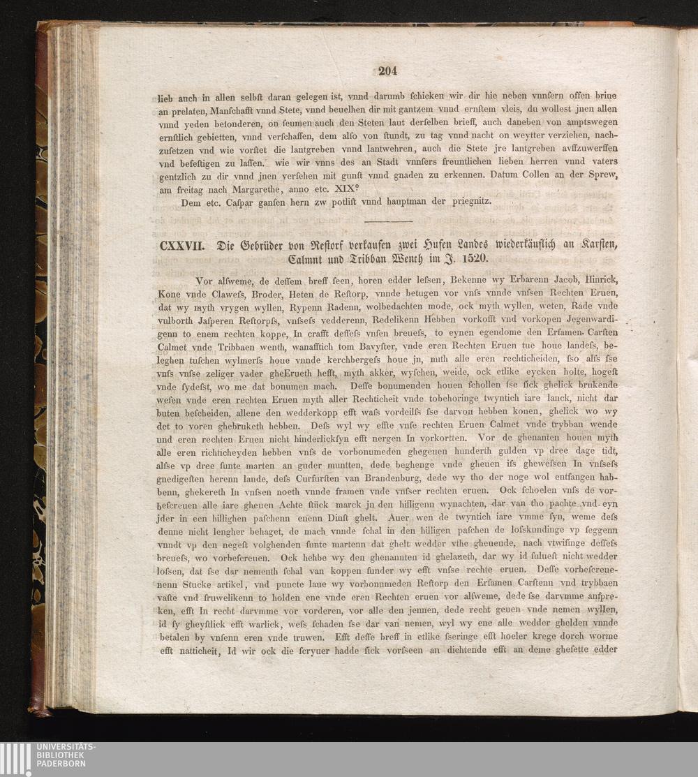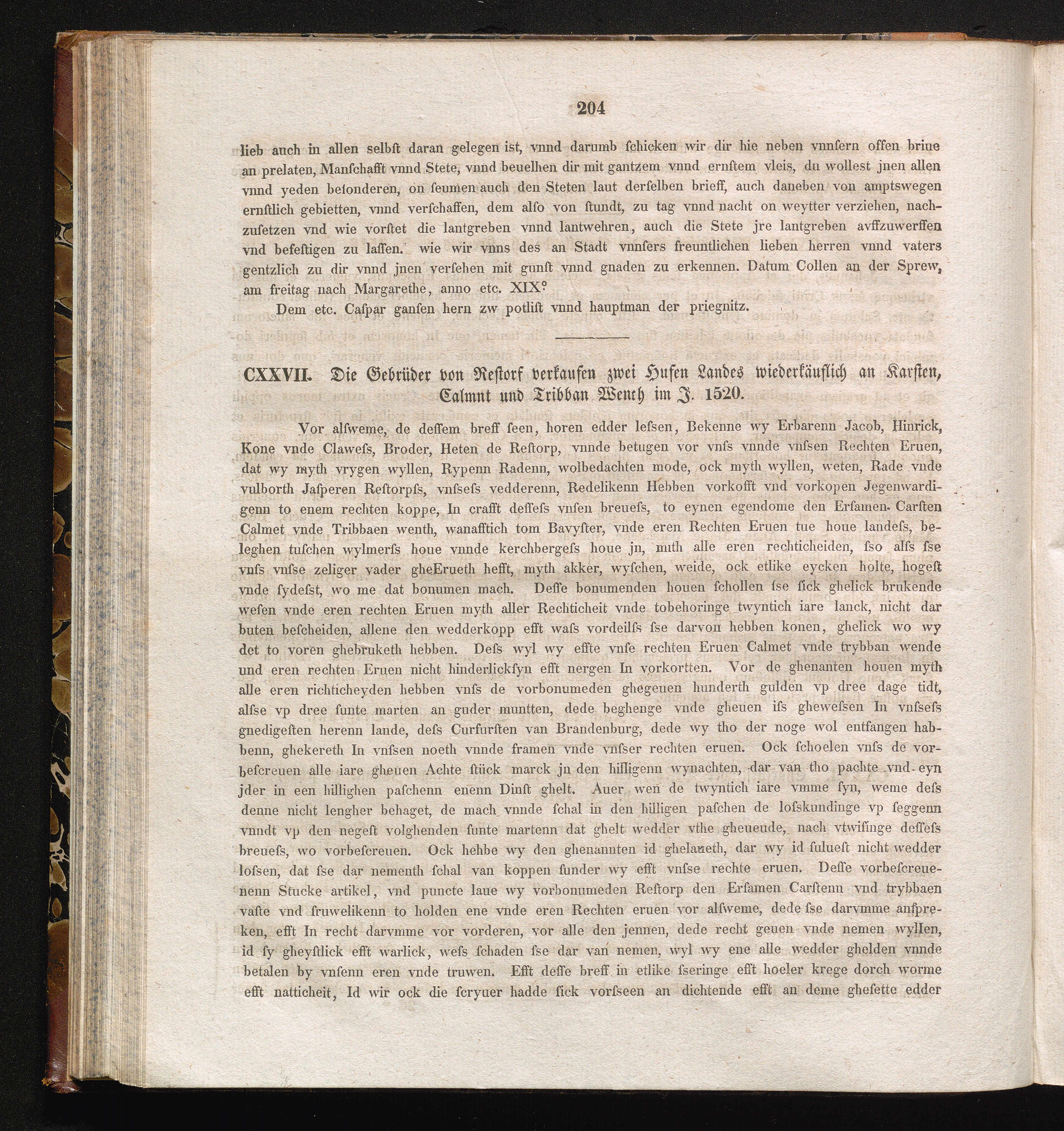 CXXVII. Die gebrüder von Restorf verkaufen zwei Hufen Landes wiederkäuflich an Karsten,[...]