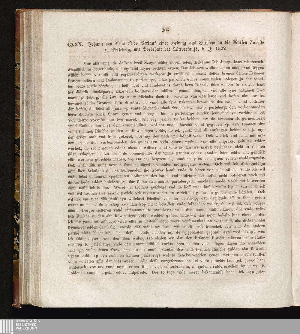 CXXX. Johann von Winterfelds Verkauf einer Hebung aus Stresow an die Marien Capelle[...]