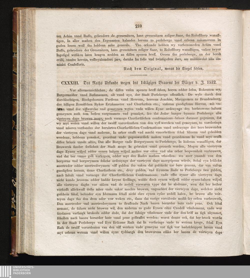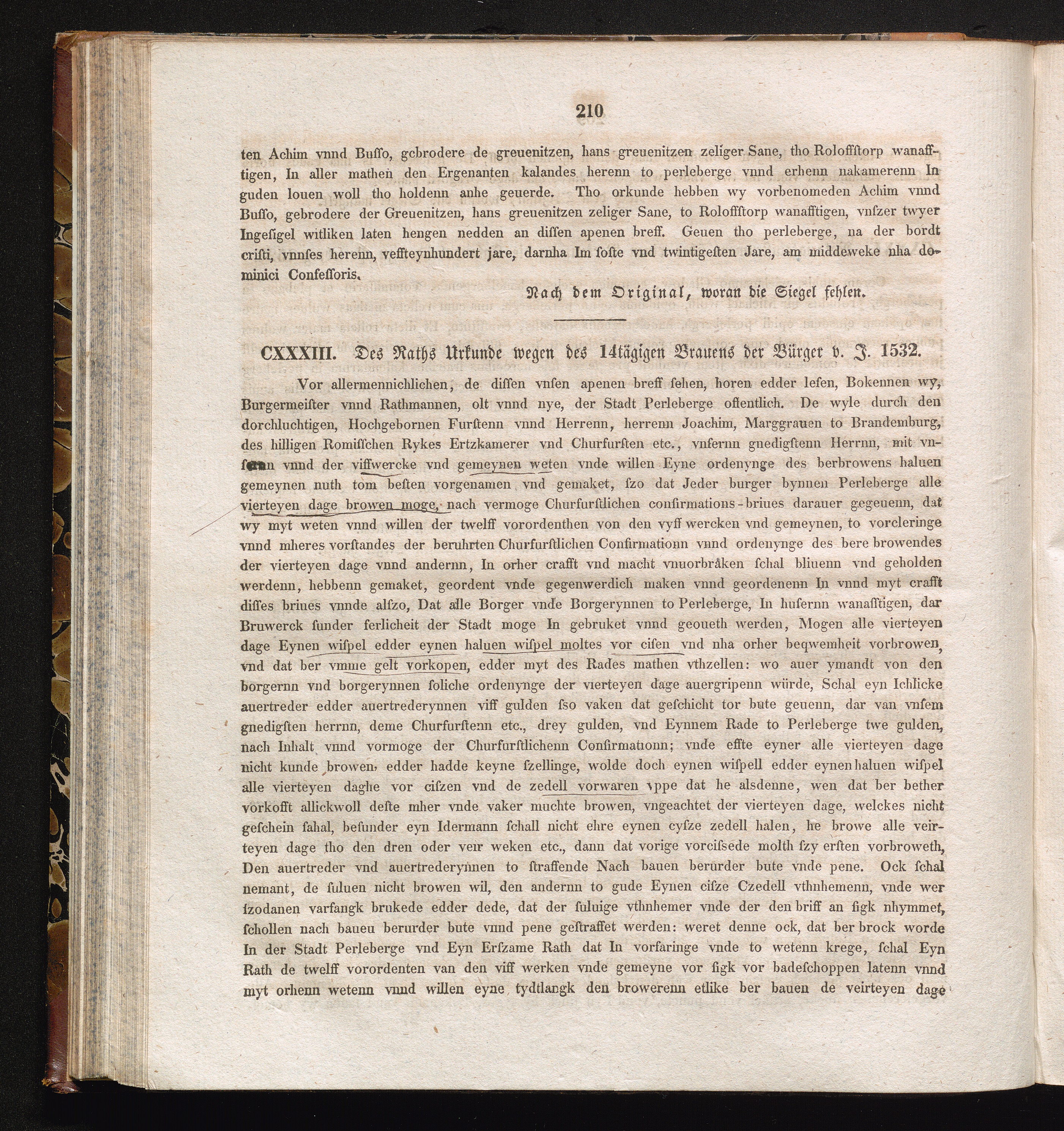 CXXXIII. Des Raths Urkunde wegen des 14tägigen Brauens der Bürger v. J. 1532.