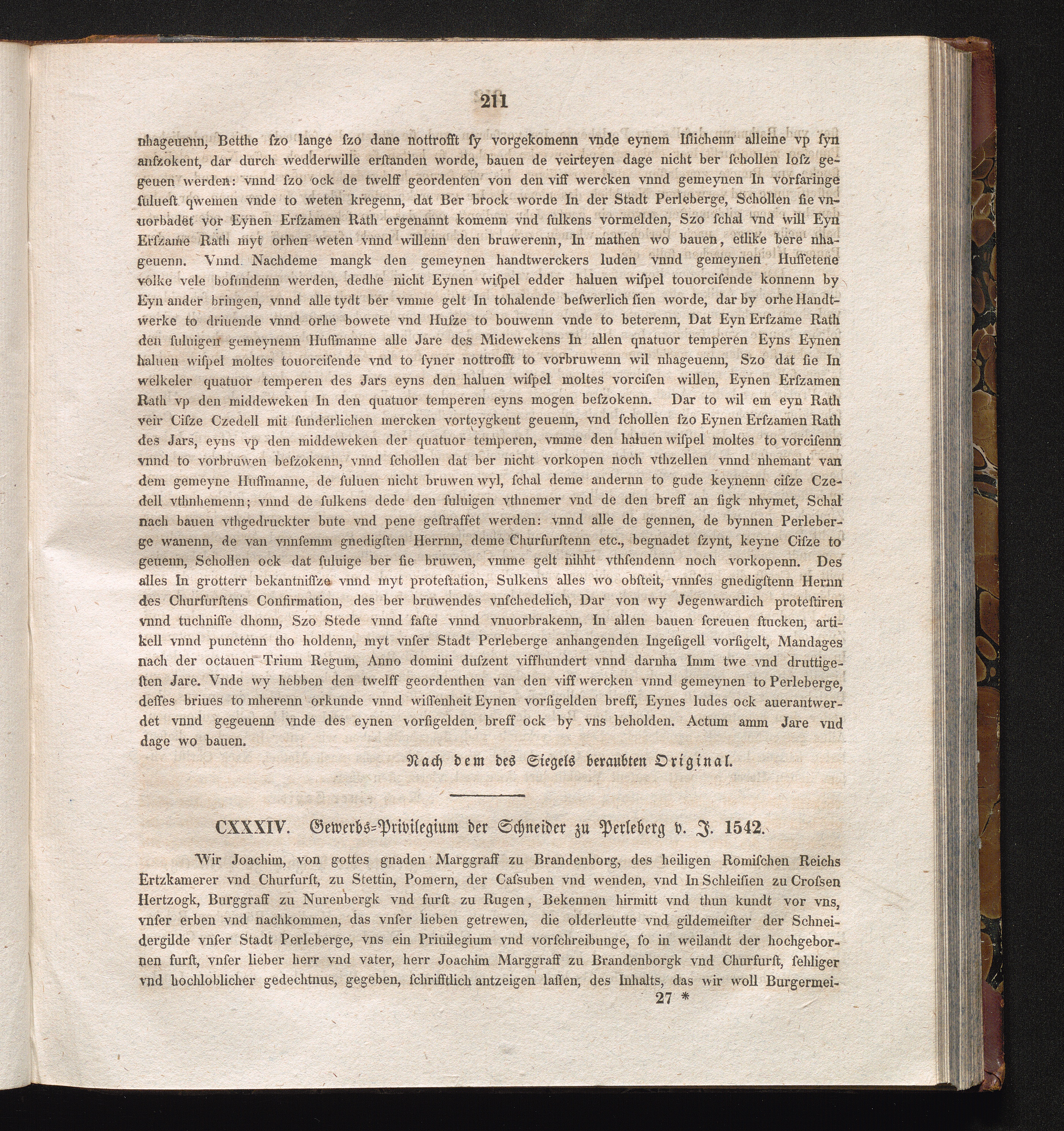 CXXXIV. Gewerbs-Privilegium der Schneider zu Perleberg v. J. 1542.