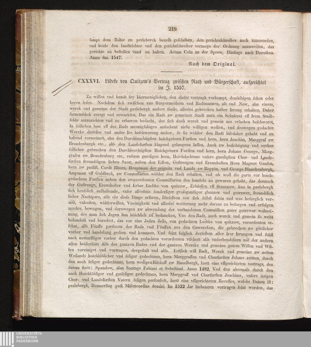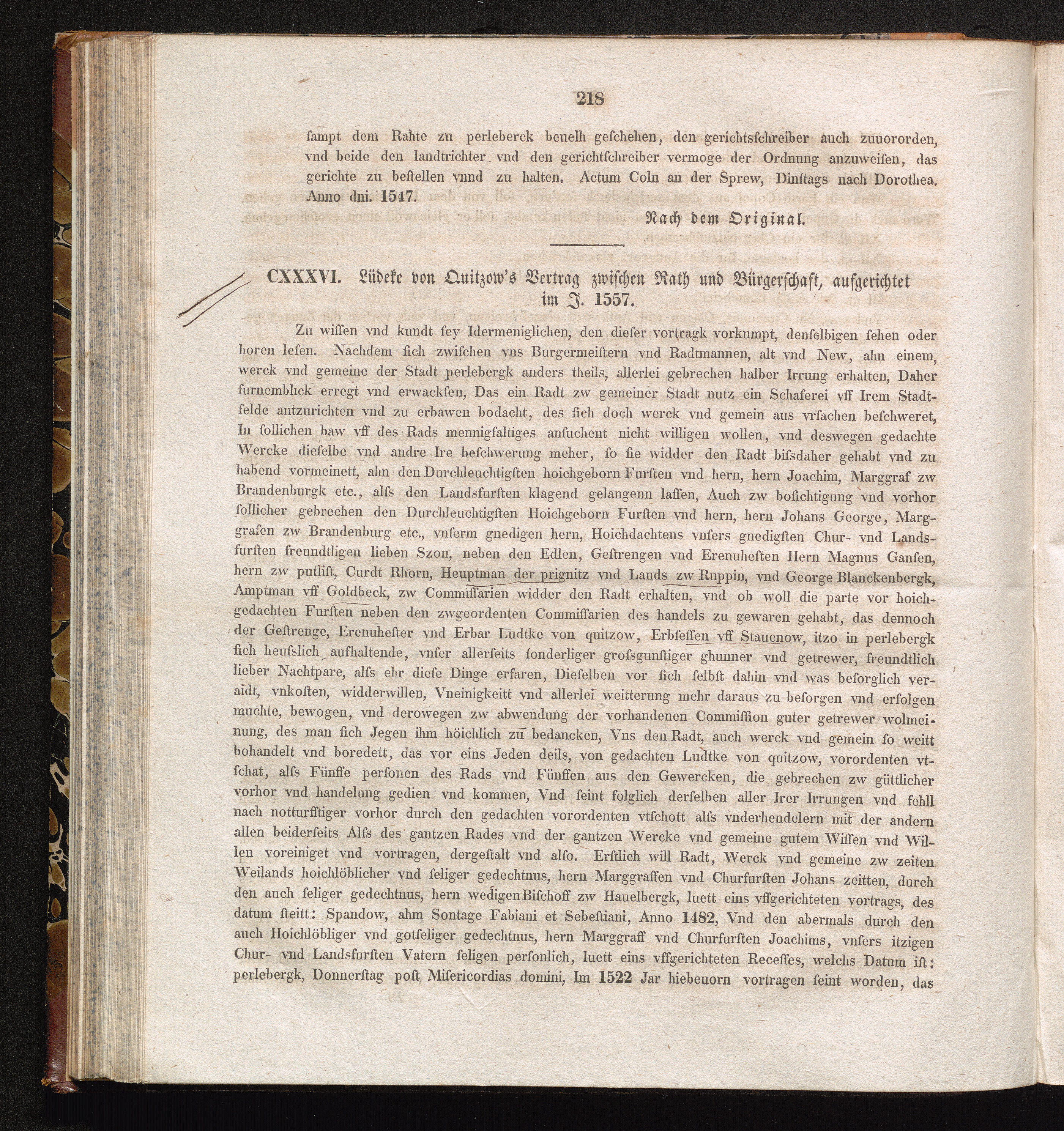 CXXXVI. Lüdeke von Quitzow's Vertrag zwischen Rath und Bürgerschaft, aufgerichtet[...]