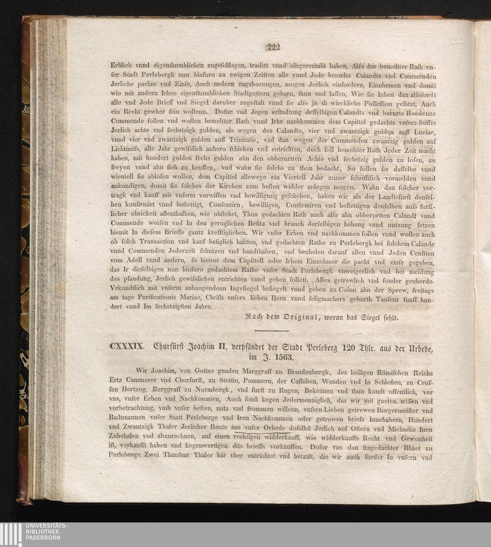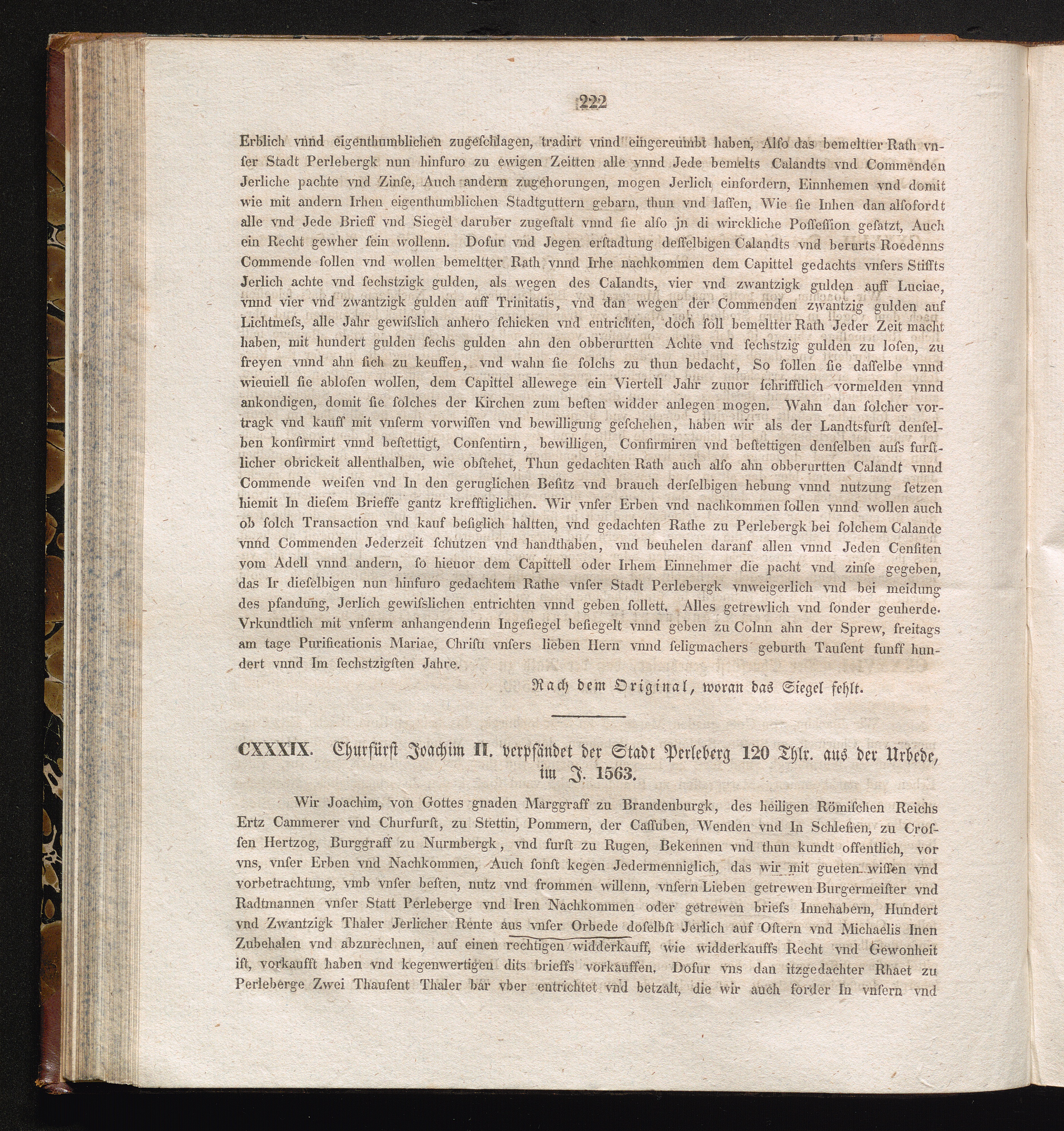 CXXXIX. Churfürst Joachim II. verpfändet der Stadt Perleberg 120 Thlr. aus der Urbede,[...]