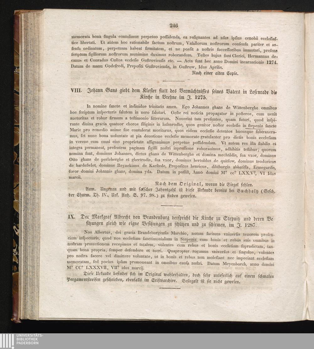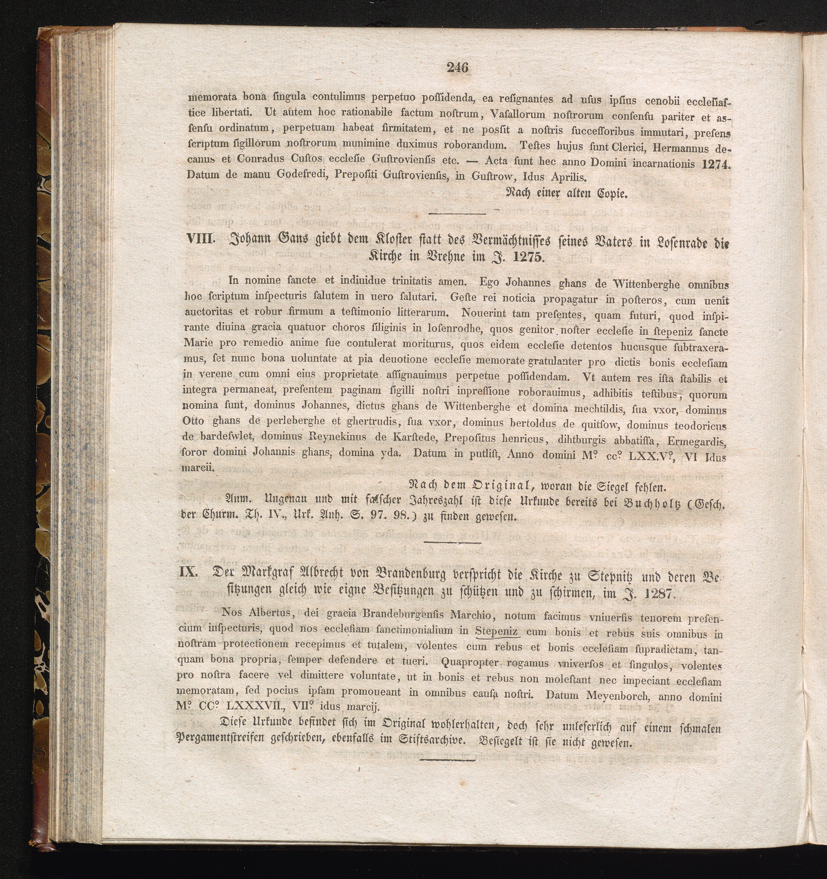 IX. Der Markgraf Albrecht von Brandenburg verspricht die Kirche zu Stepnitz und deren[...]