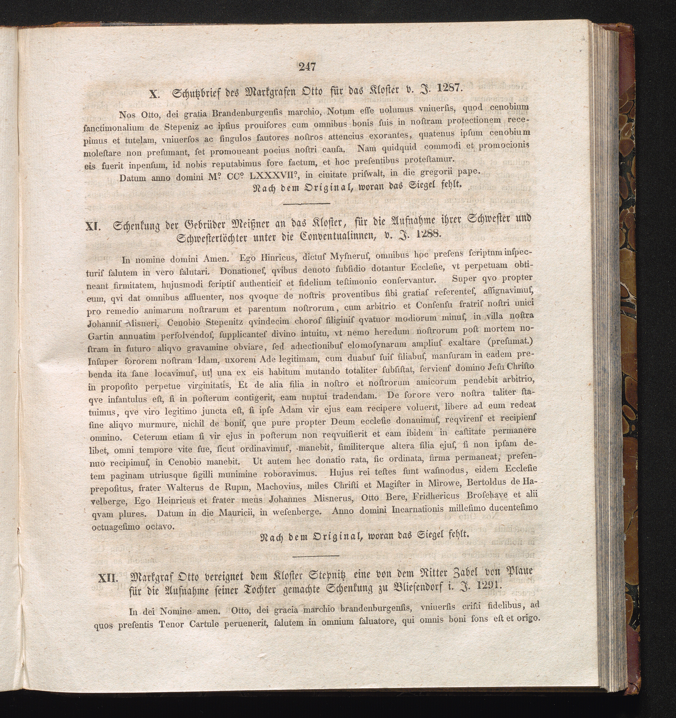 XII. Markgraf Otto vereignet dem Kloster Stepnitz eine von dem Ritter Zabel von Plaue[...]