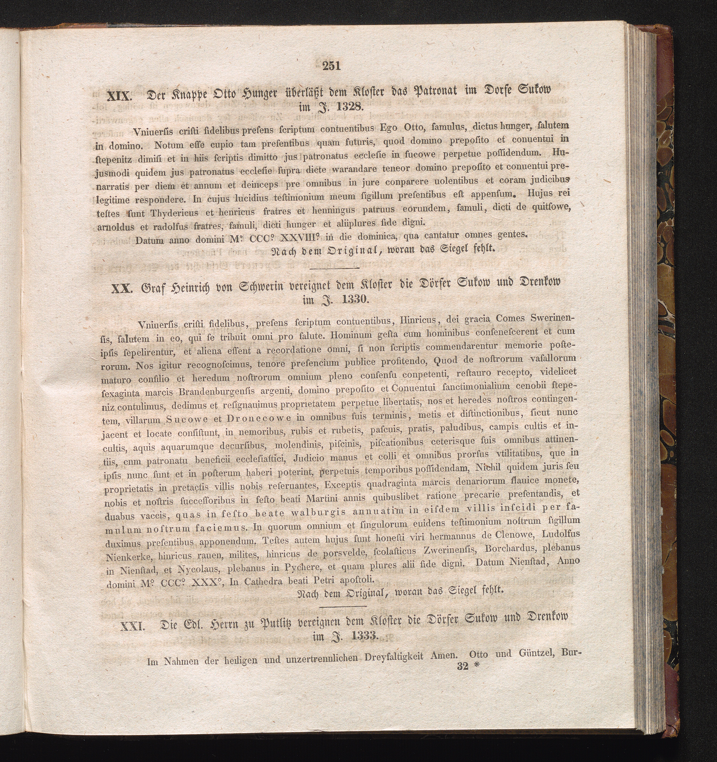 XXI. Die Edl. Herrn zu Putlitz vereignen dem Kloster die Dörfer Sukow und Drenkow[...]
