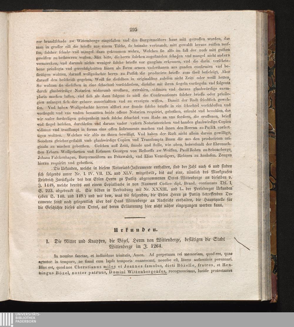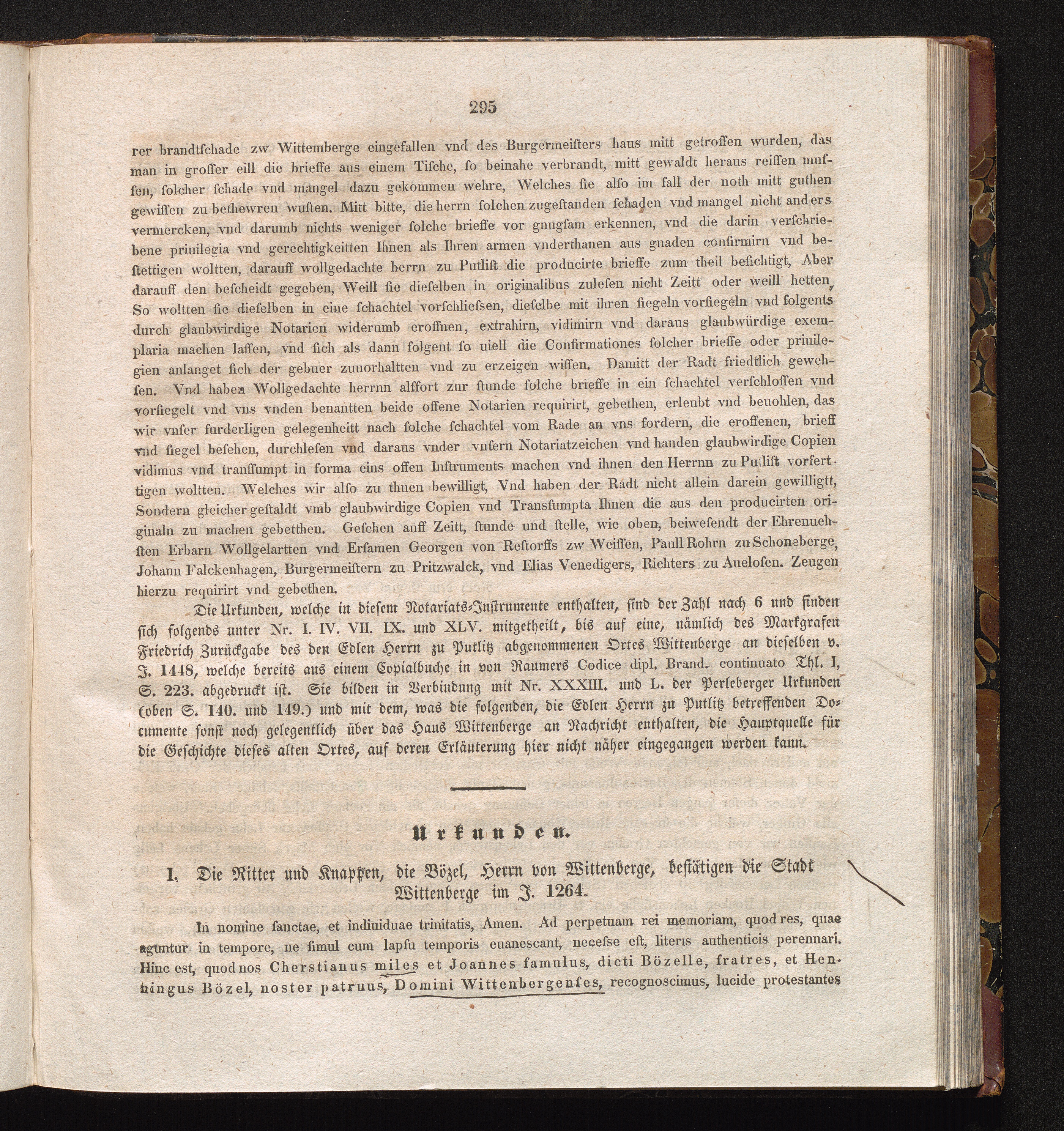 I. Die Ritter und Knappen, die Bözel, Herrn von Wittenberge, bestätigen die Stadt[...]