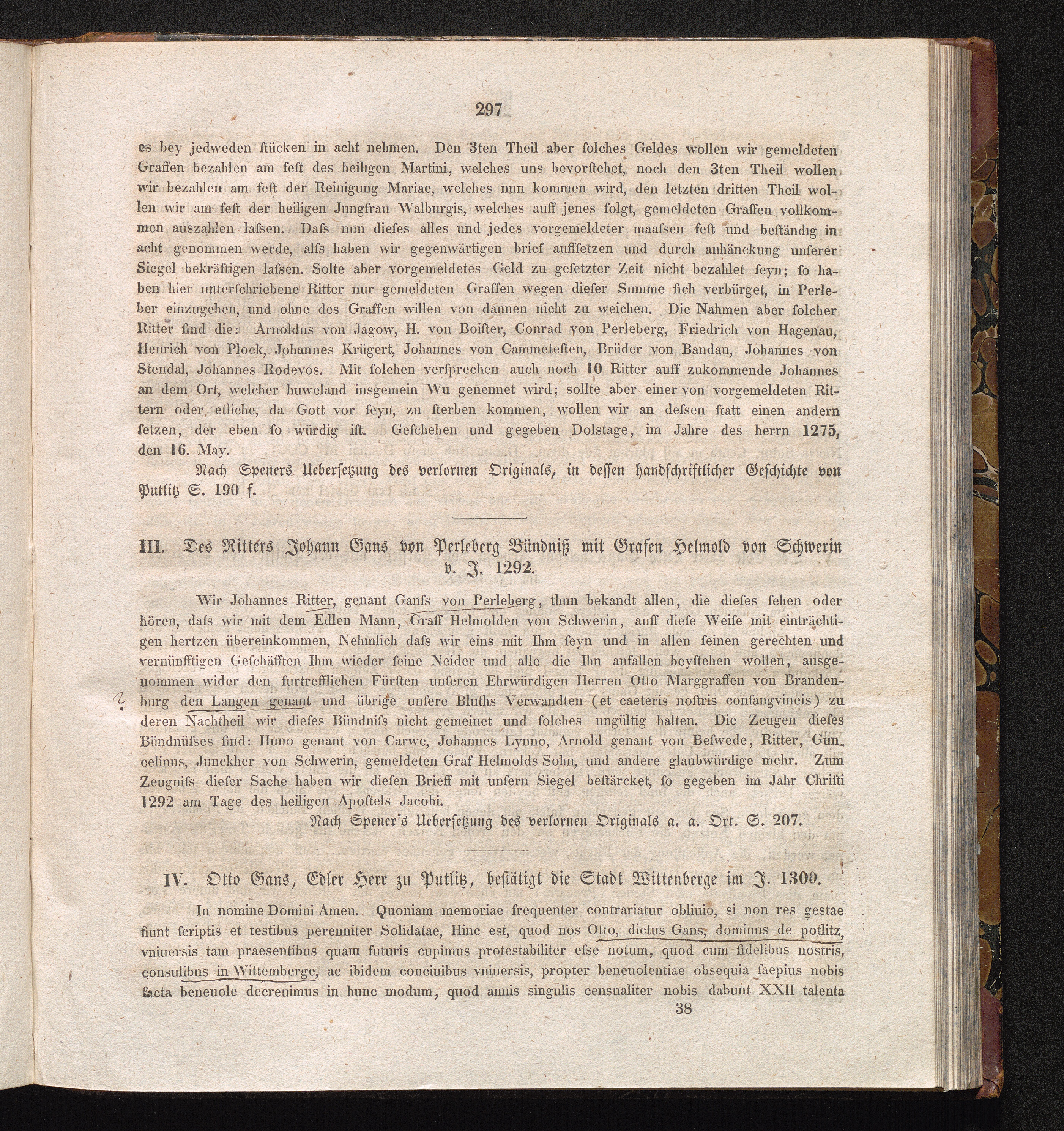 IV. Otto Gans, Edler Herr zu Putlitz, bestätigt die Stadt Wittenberge im J. 1300[...]