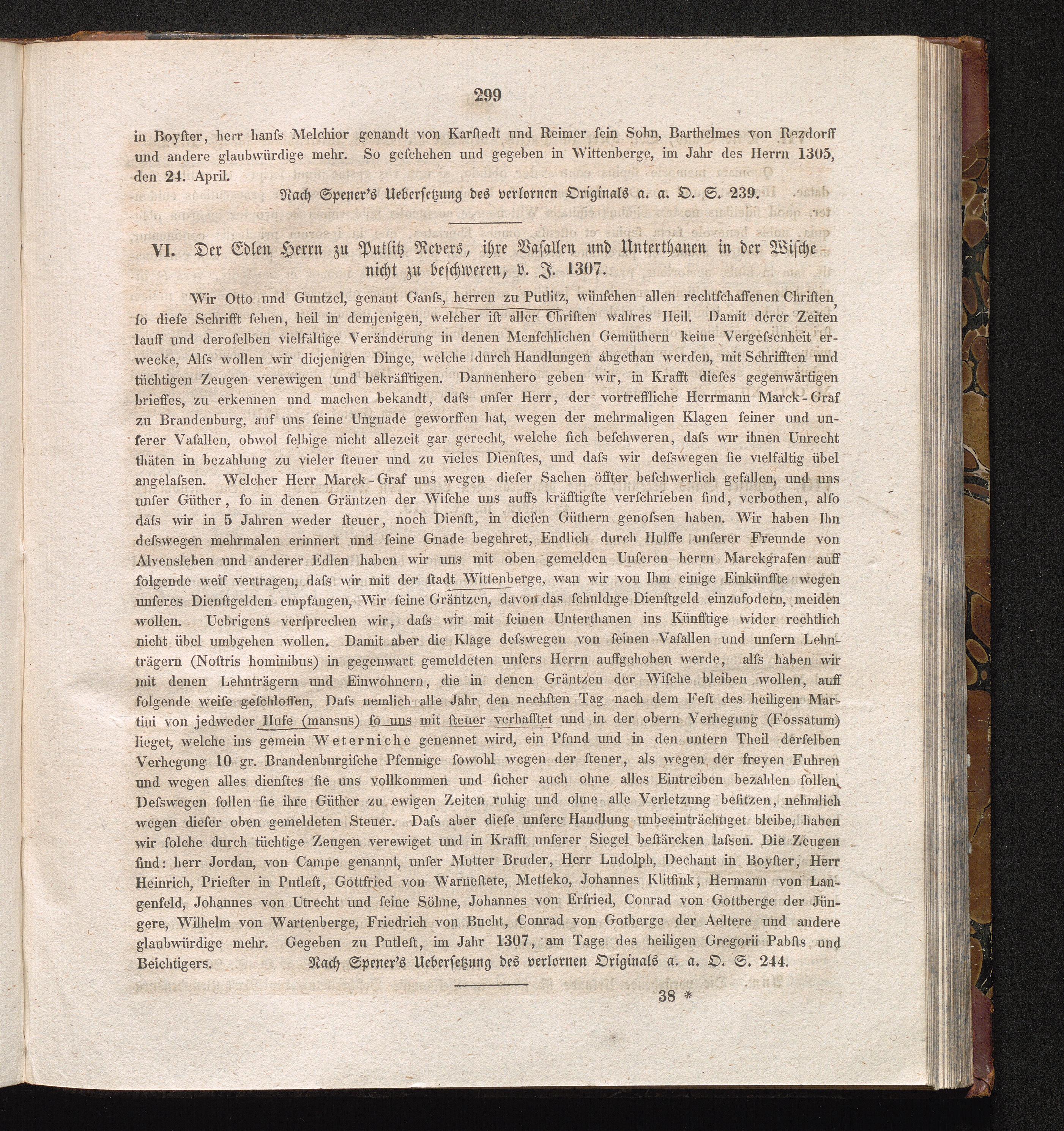 VI. Der Edlen Herrn zu Putlitz Revers, ihre Vasallen und Unterthanen in der Wische[...]