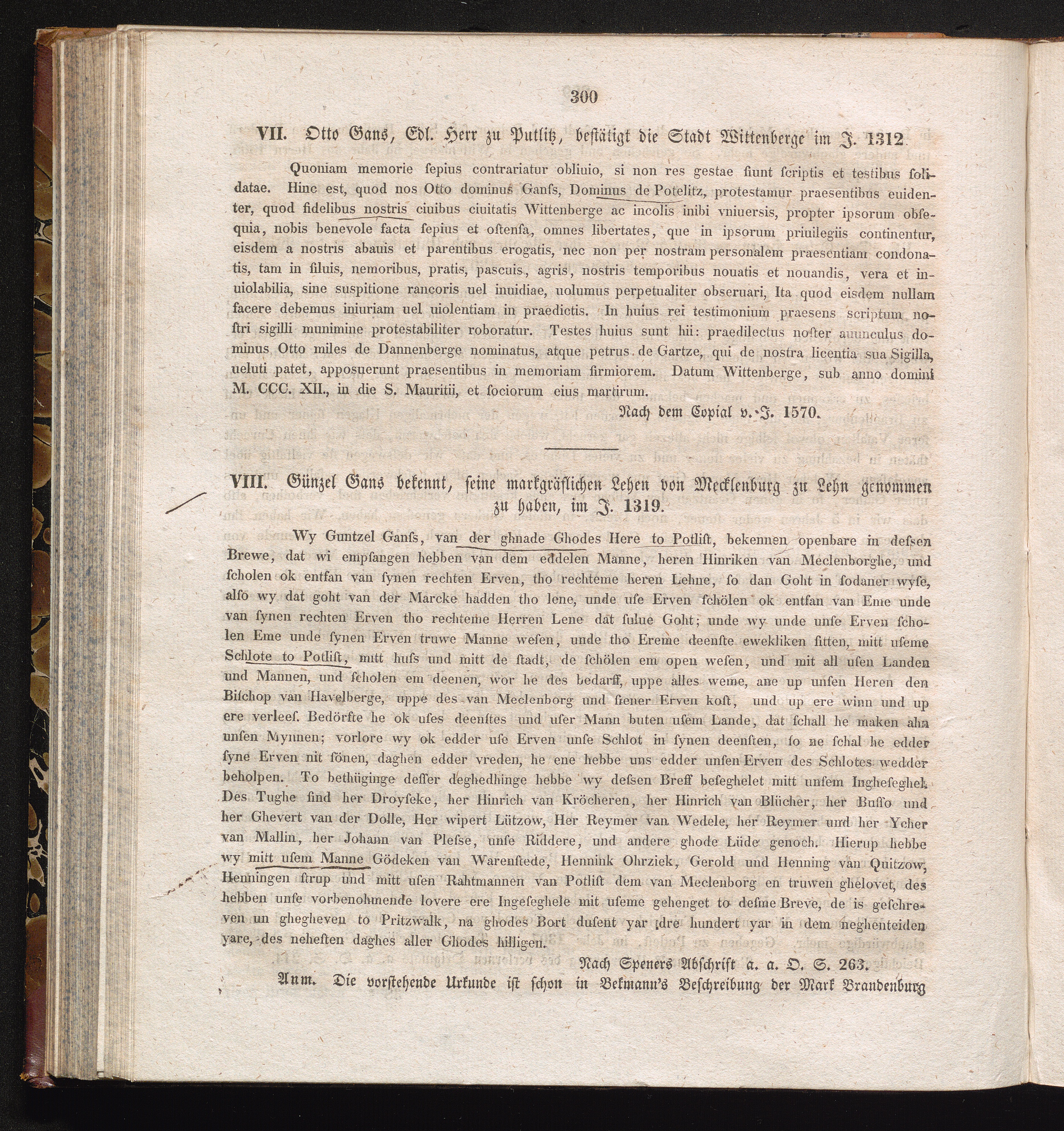 VIII. Günzel Gans bekennt, seine markgräflichen Lehen von Mecklenburg zu Lehn genommen[...]