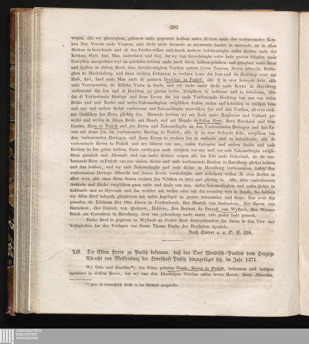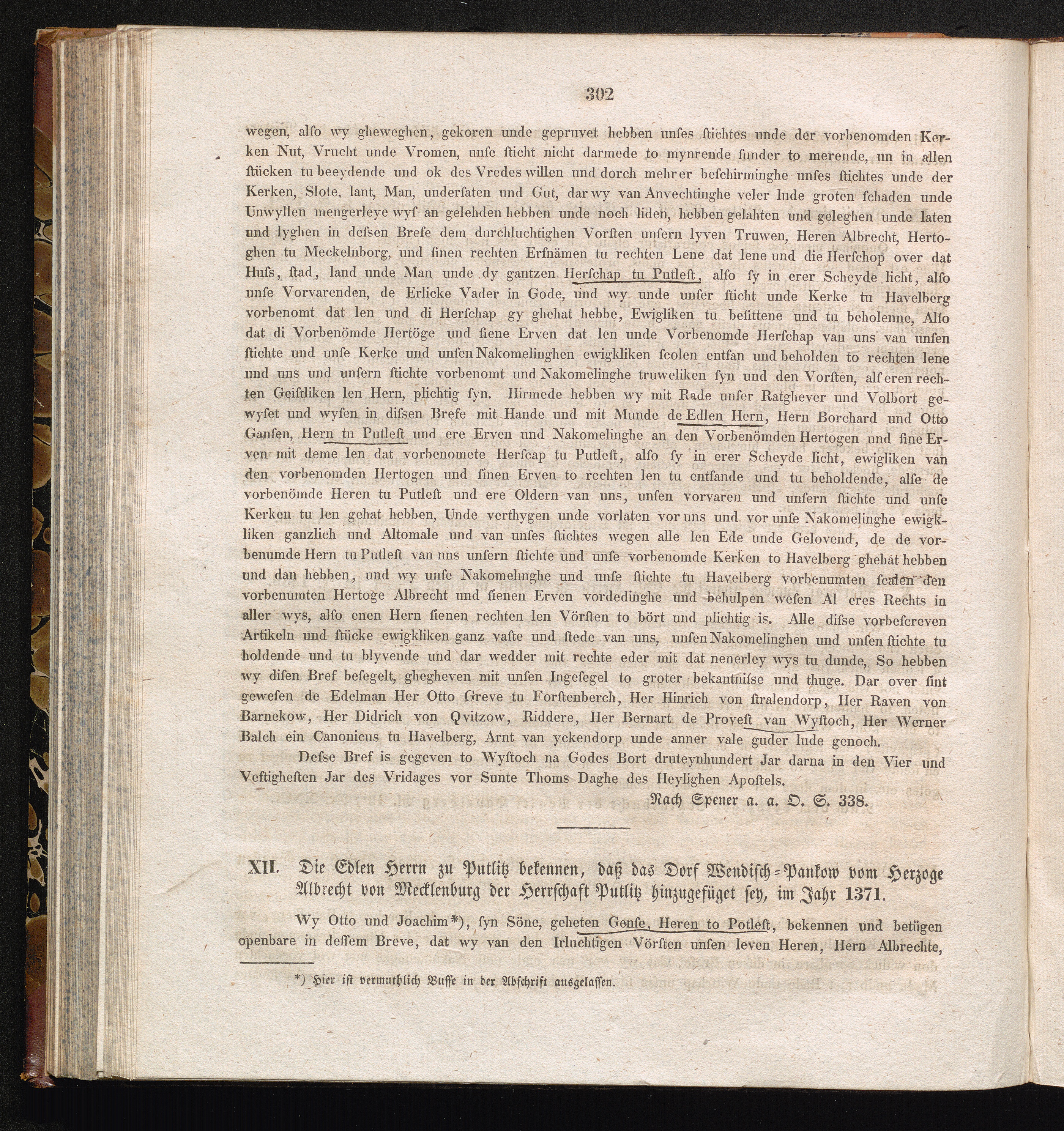 XII. Die Edlen Herrn zu Putlitz bekennen, daß das Dorf Wendisch-Pankow vom Herzoge[...]