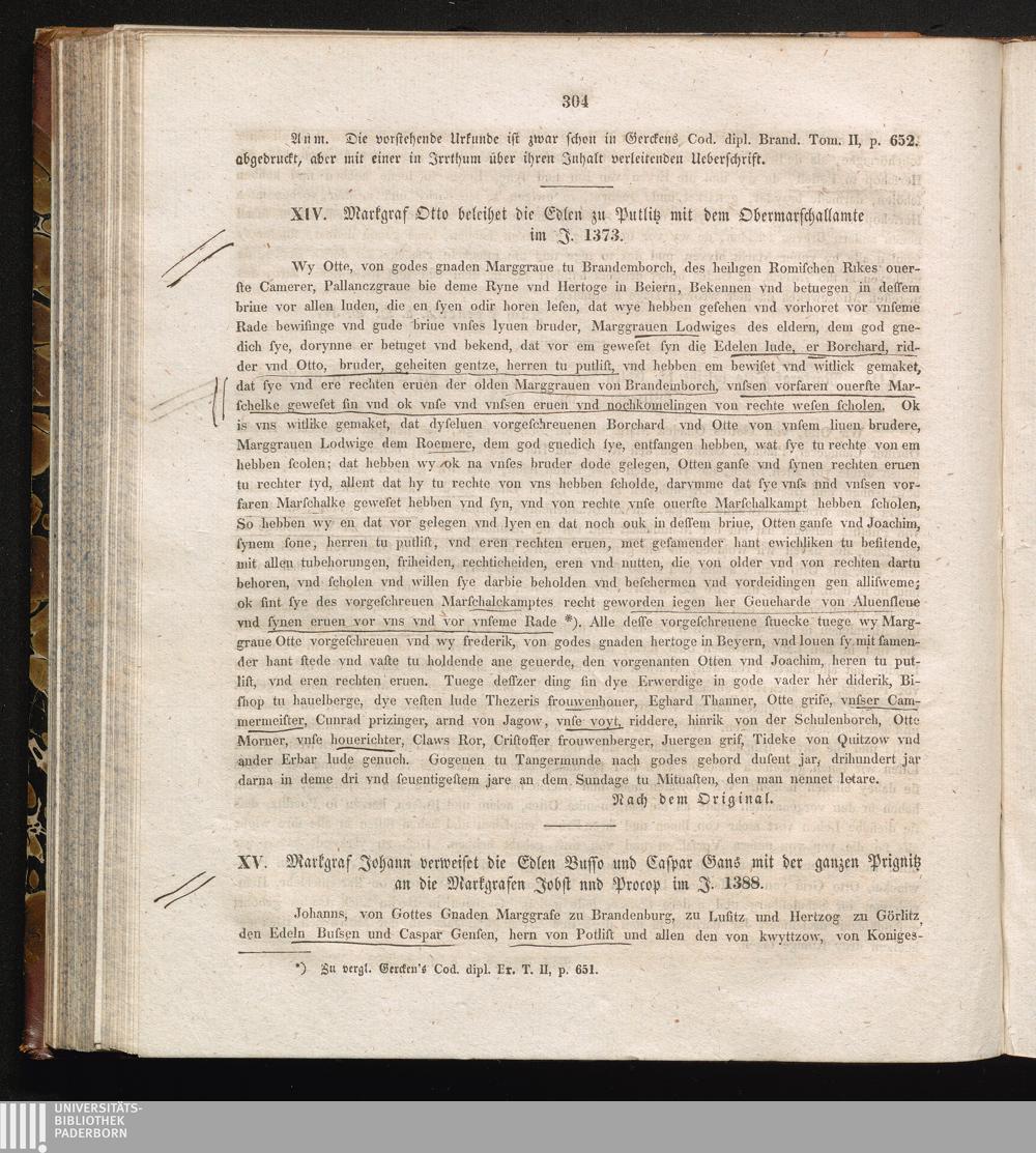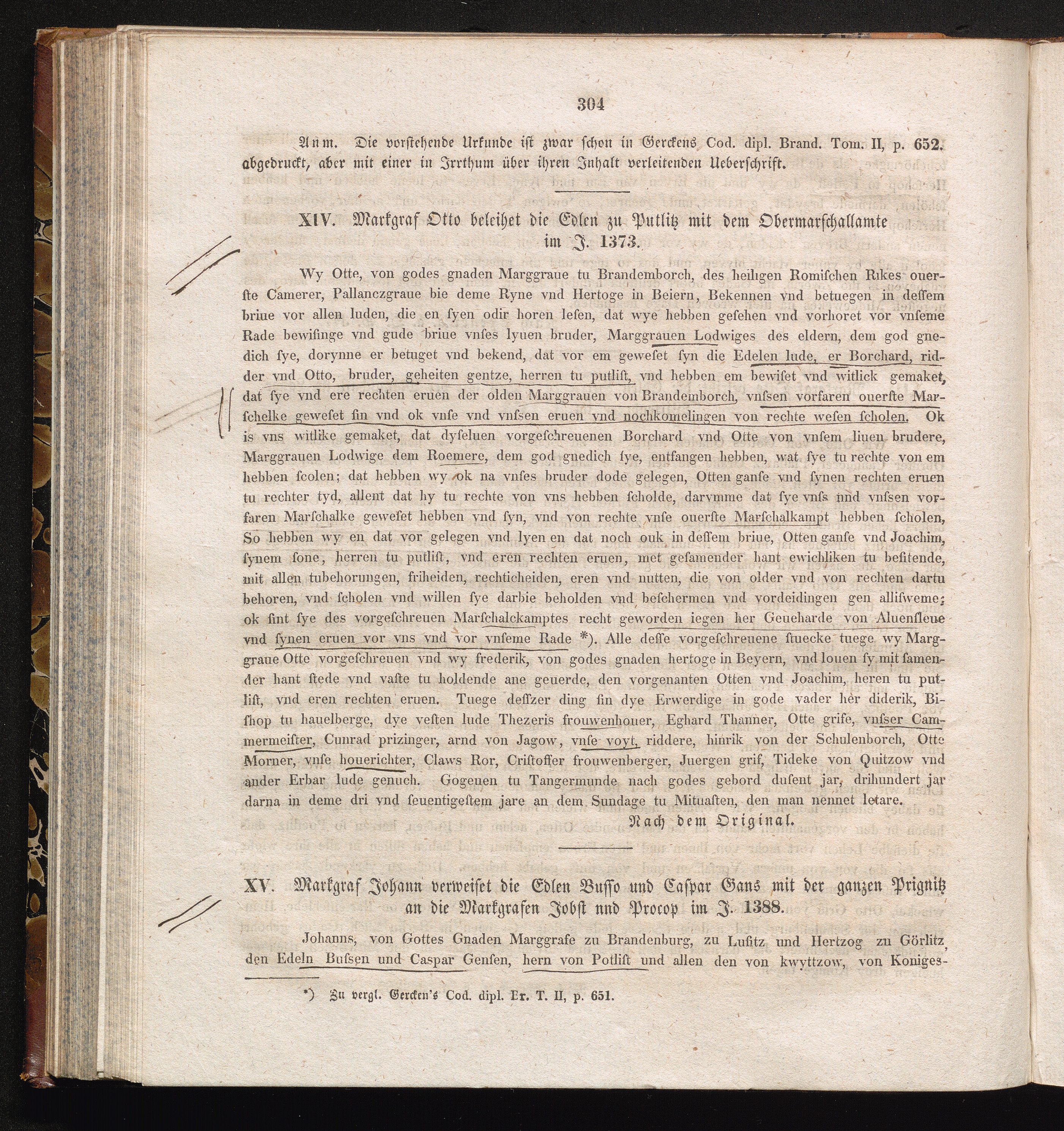 XV. Markgraf Johann verweiset die Edlen Busso und Caspar Gans mit der ganzen Prignitz[...]