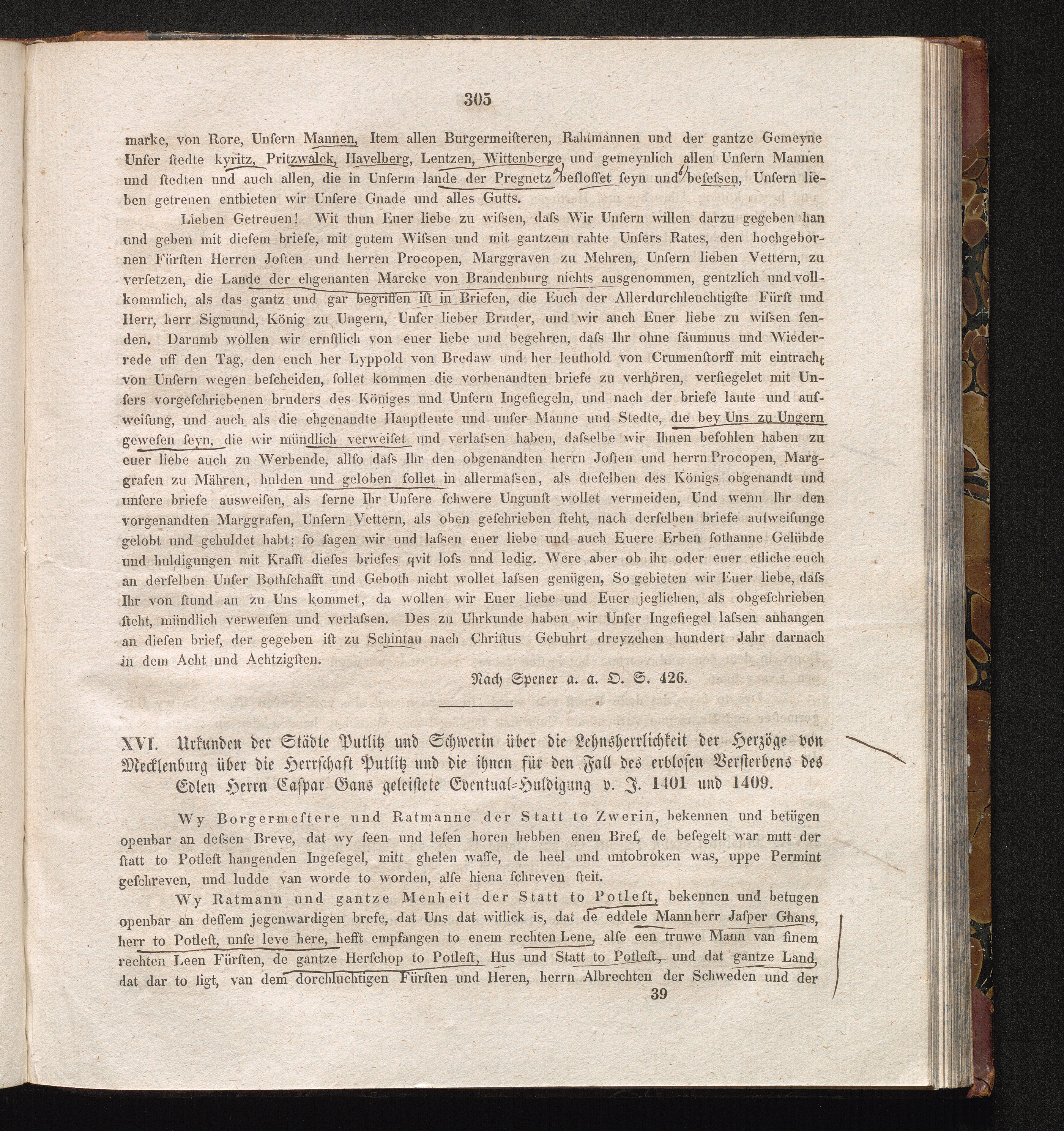 XVI. Urkunden der Städte Putlitz und Schwerin über die Lehnsherrlichkeit der Herzöge[...]
