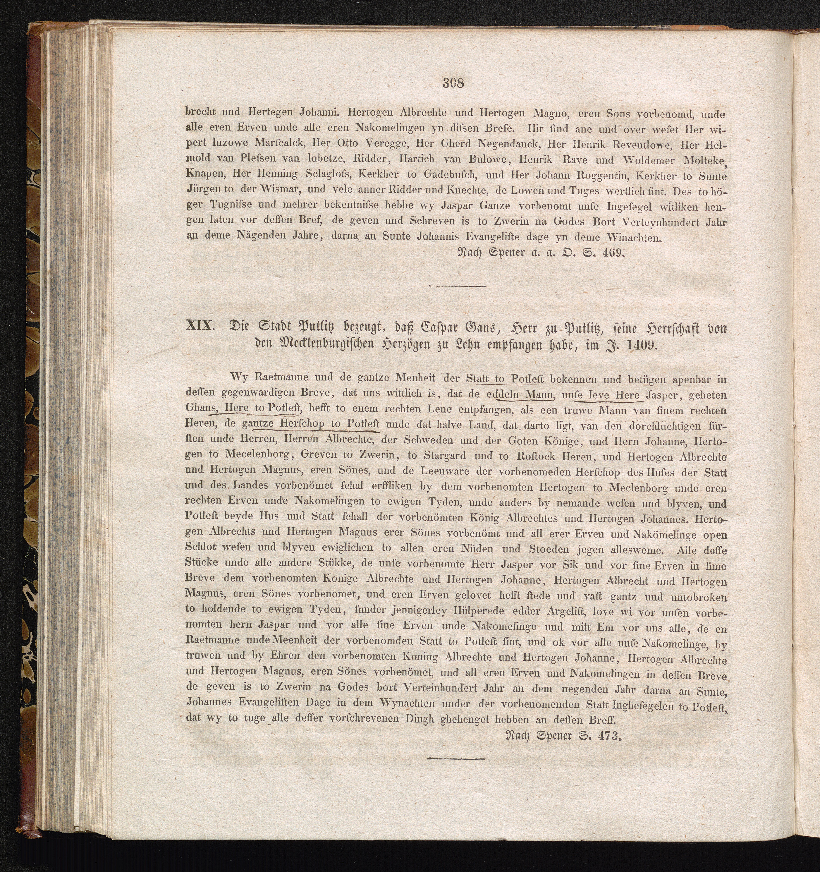 XIX. Die Stadt Putlitz bezeugt, daß Caspar Gans, Herr zu Putlitz, seine Herrschaft[...]