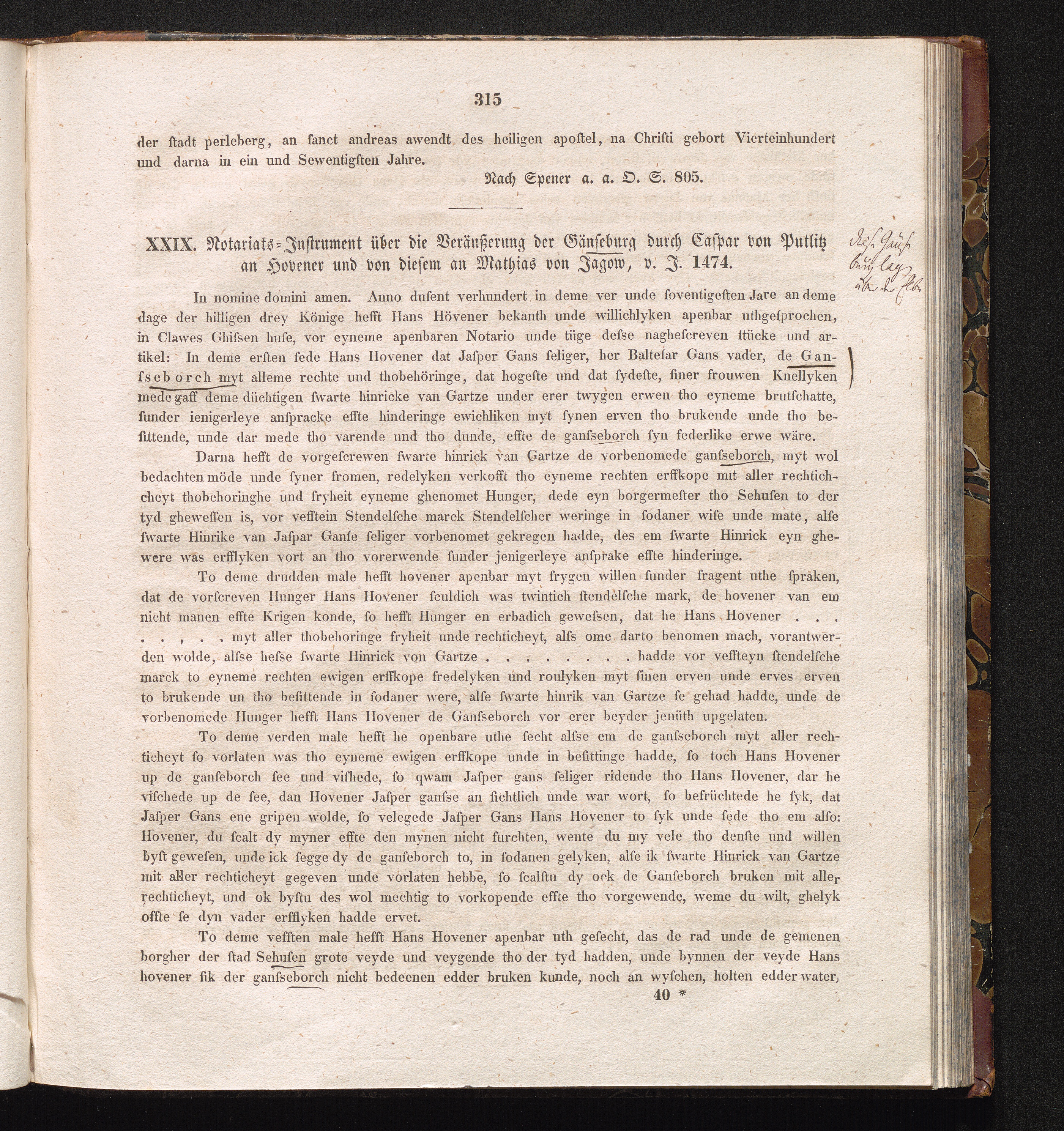 XXIX. Notariats-Instrument über die Veräußerung der Gänseburg durch Caspar von Putlitz[...]
