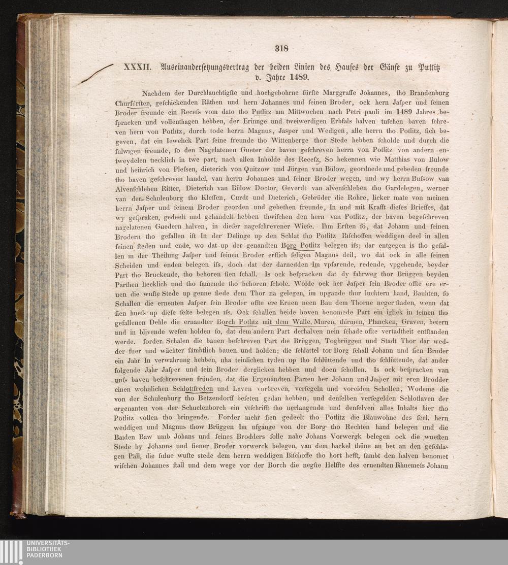 XXXII. Auseinandersetzungsvertrag der beiden Linien des Hauses der Gänse zu Putlitz[...]