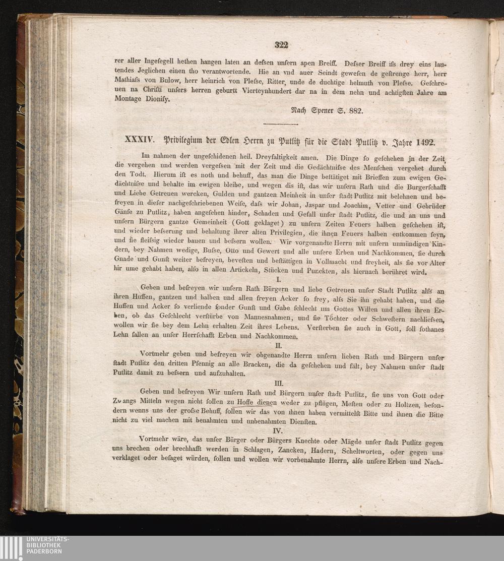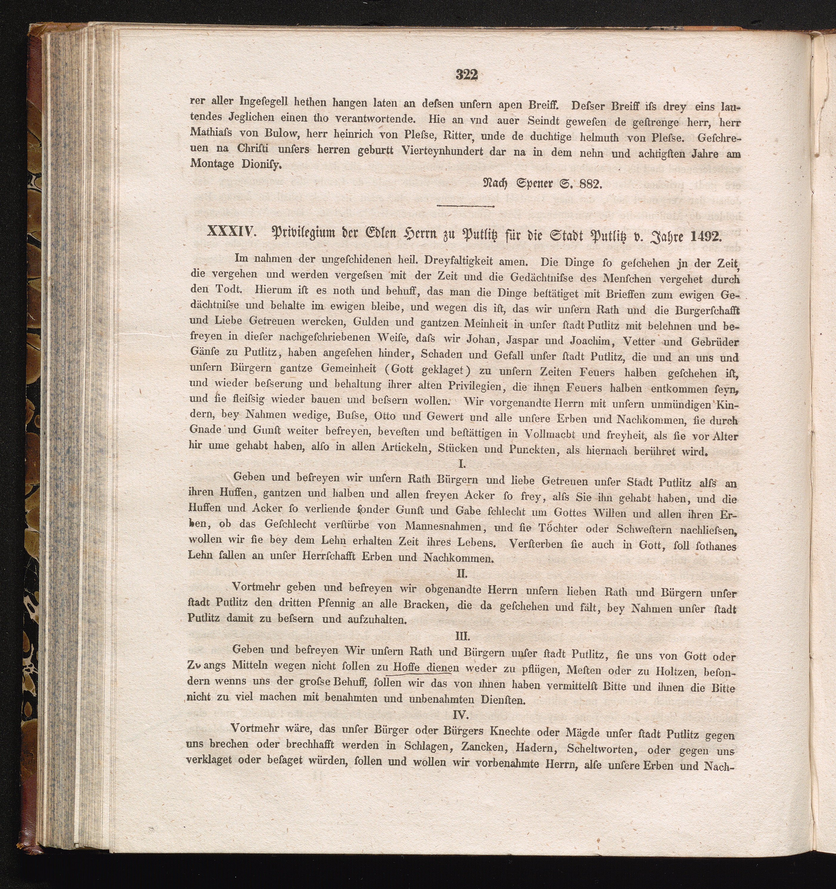 XXXIV. Priviegium der Edlen Herrn zu Putlitz für die Stadt Putlitz v. Jahre 1492[...]