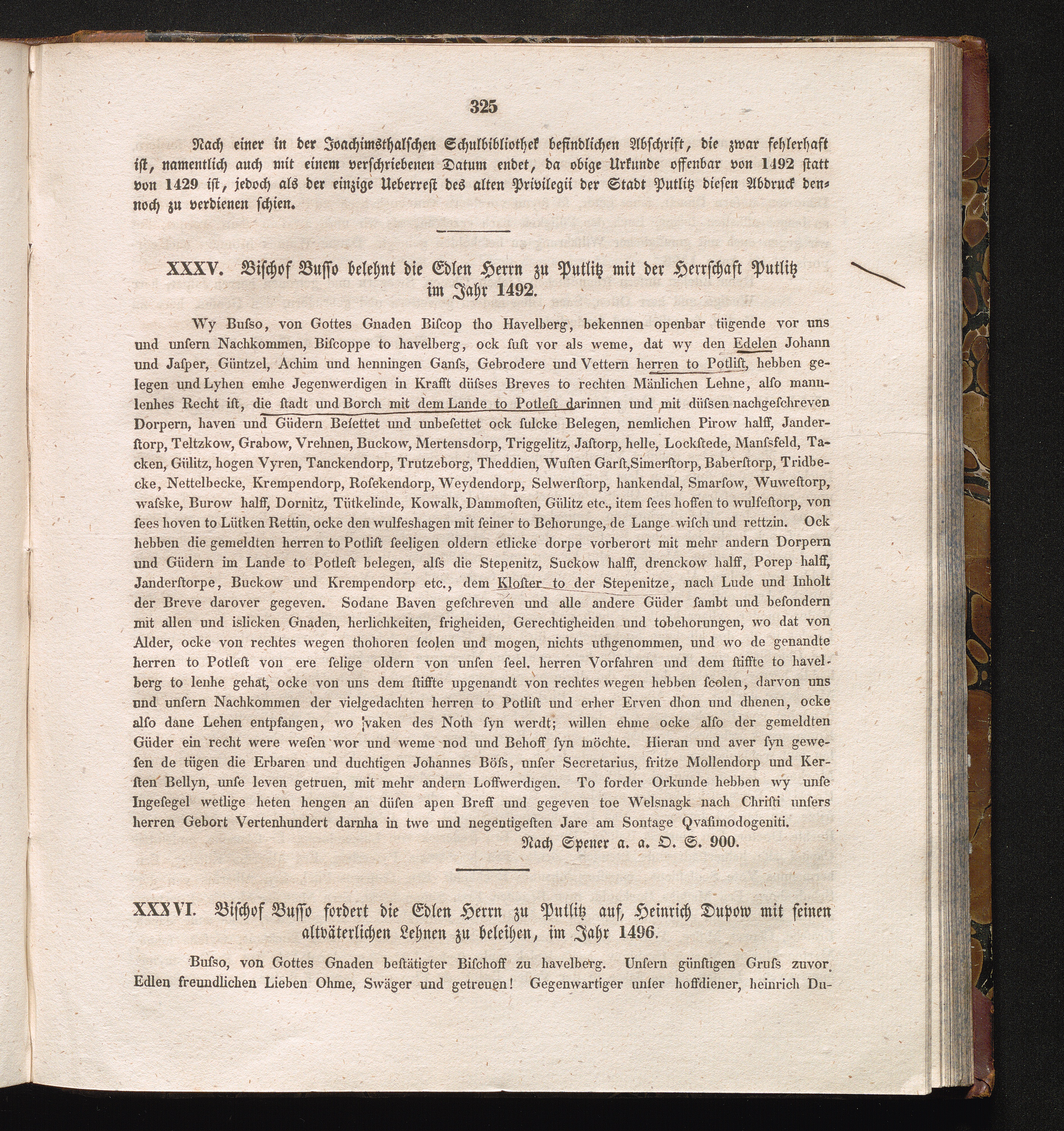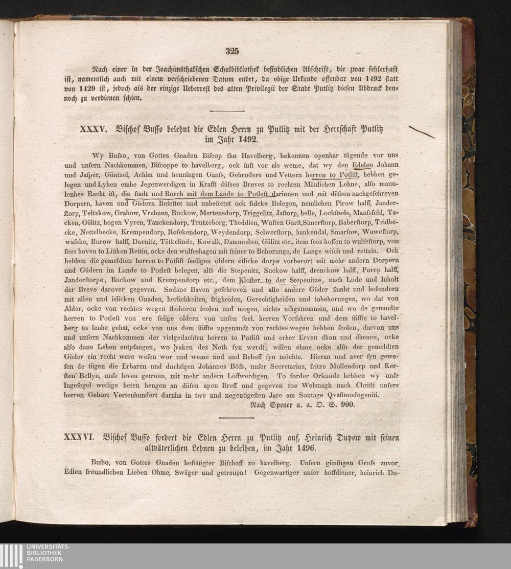 XXXVI. Bischof Busso forder die Edlen Herrn zu Putlitz auf, Heinrich Dupow mit seinem[...]