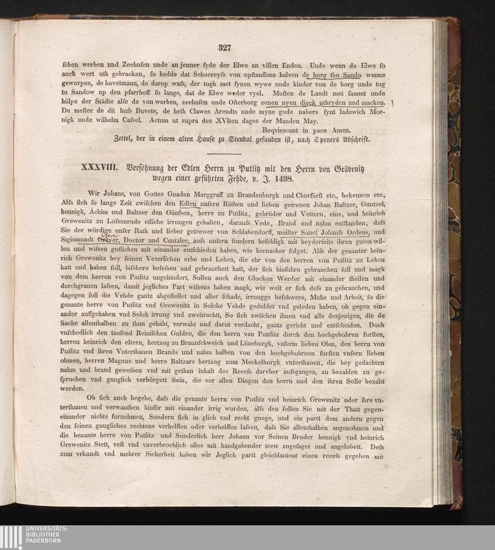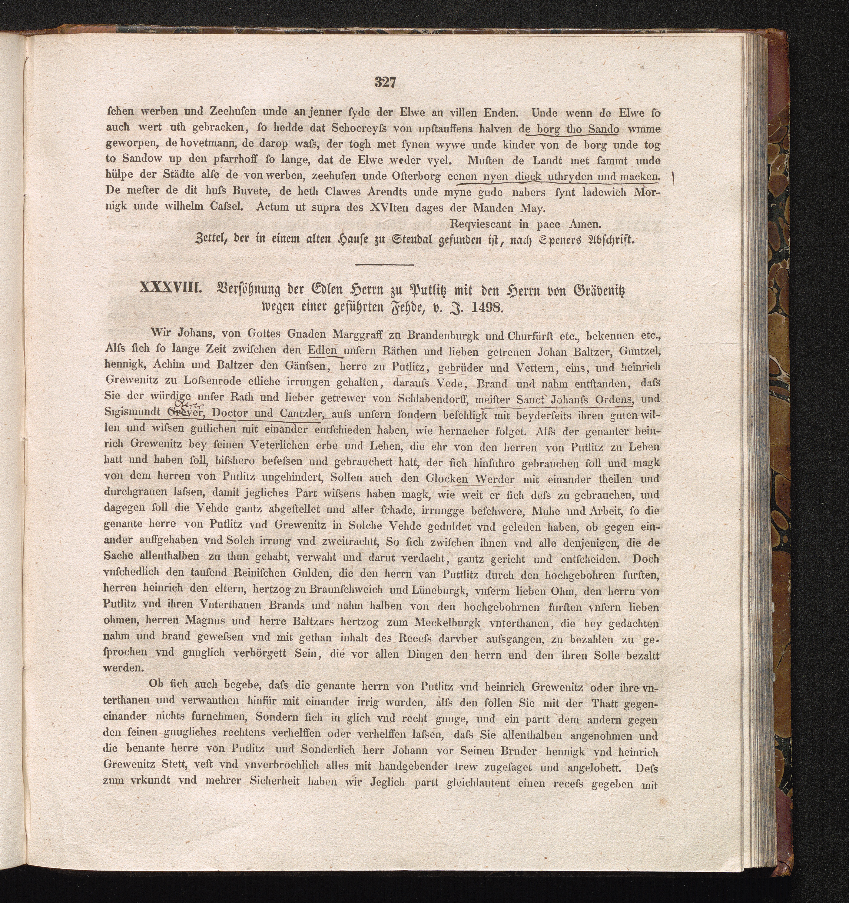 XXXVIII. Versöhnung der Edlen Herrn zu Putlitz mit dem Herrn von Grävenitz wegen[...]