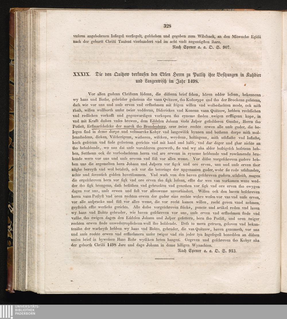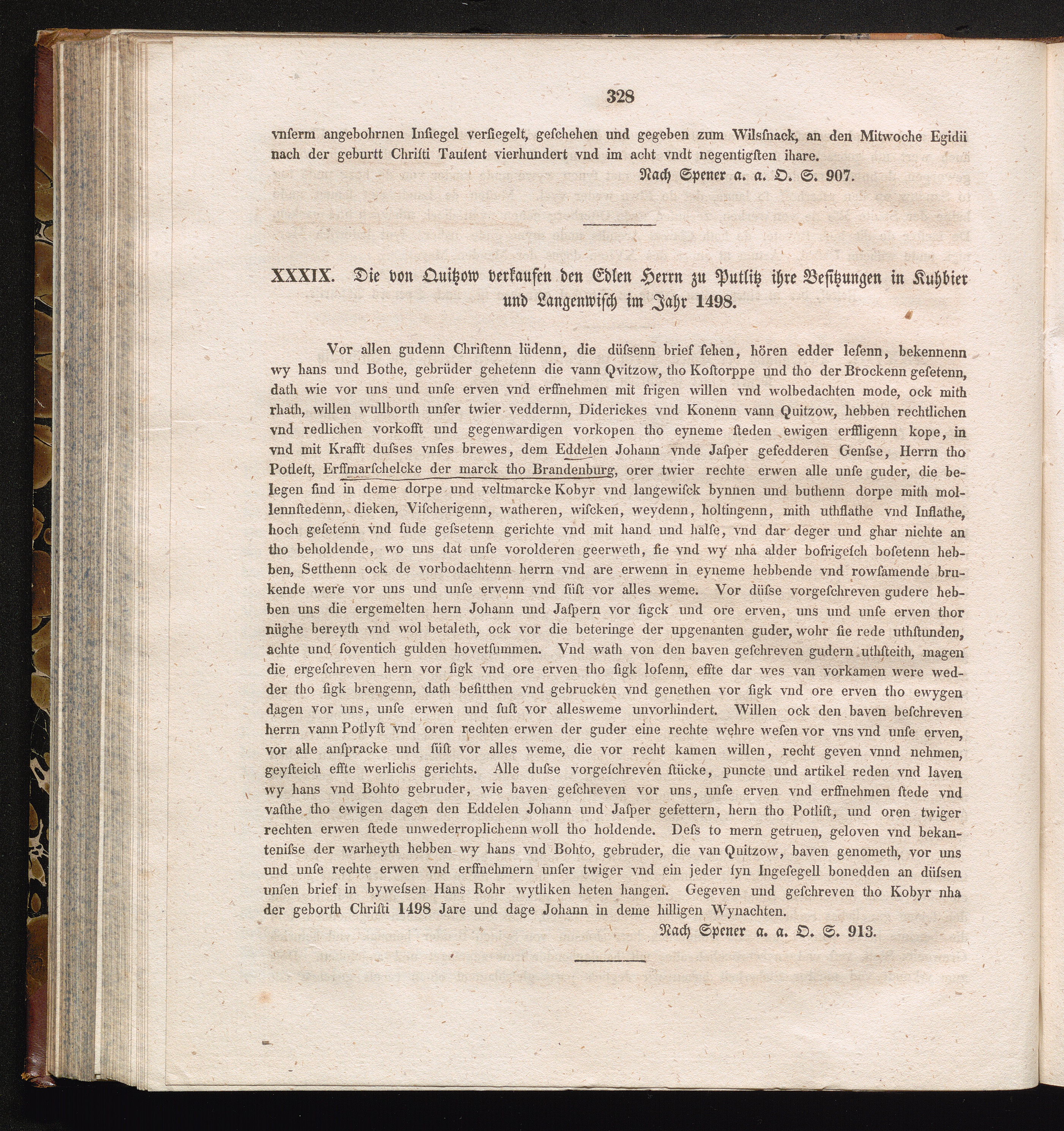 XXXIX. Die von Quitzow verkaufen den Edlen Herrn zu Putlitz ihre Besitzungen in Kuhbier[...]
