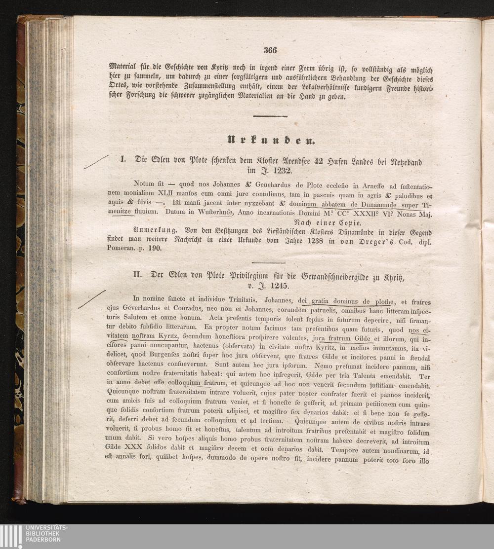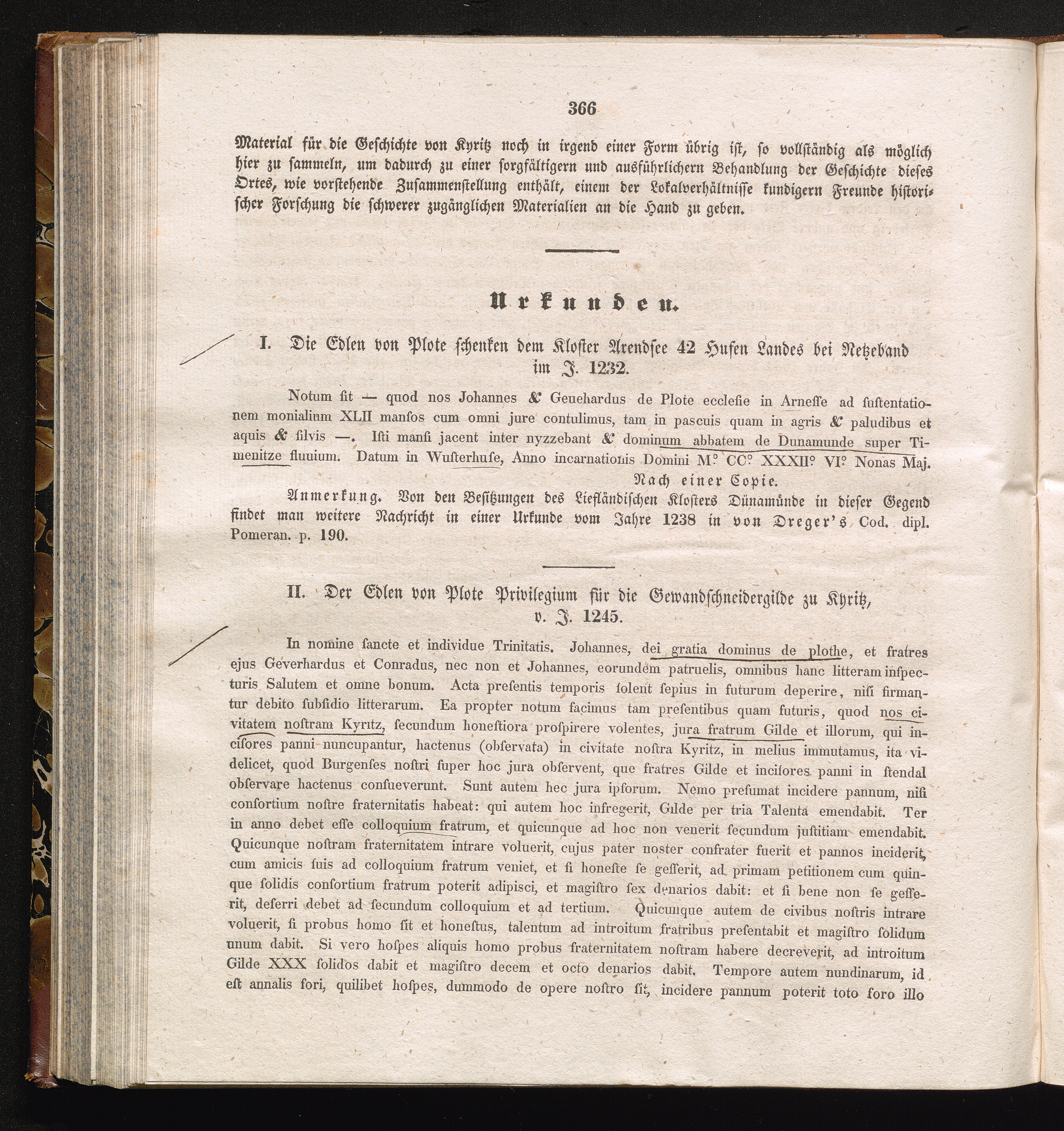 II. Der Edlen von Plote Privilegium für die Gewandschneidergilde zu Kyritz, v. J.[...]