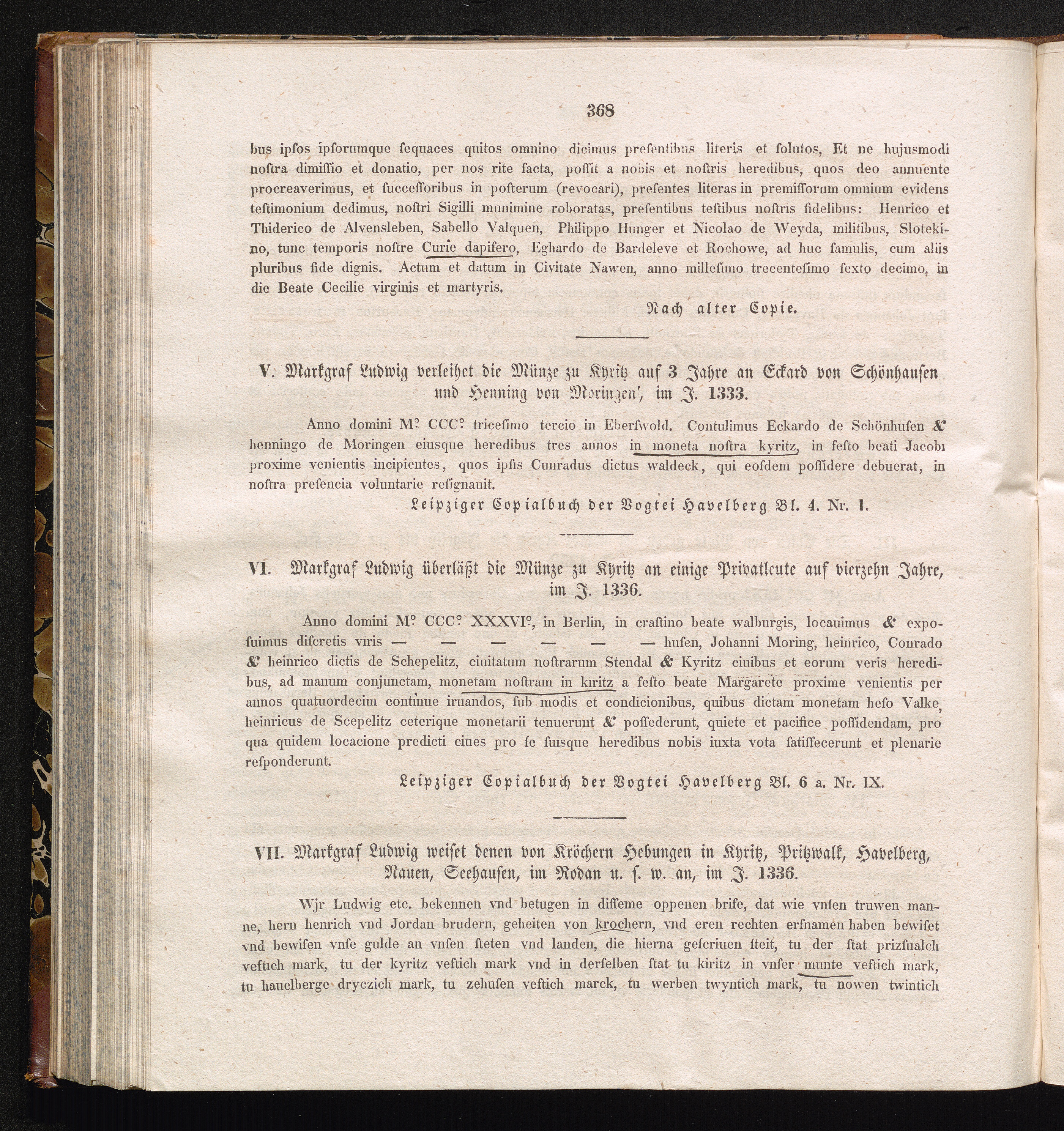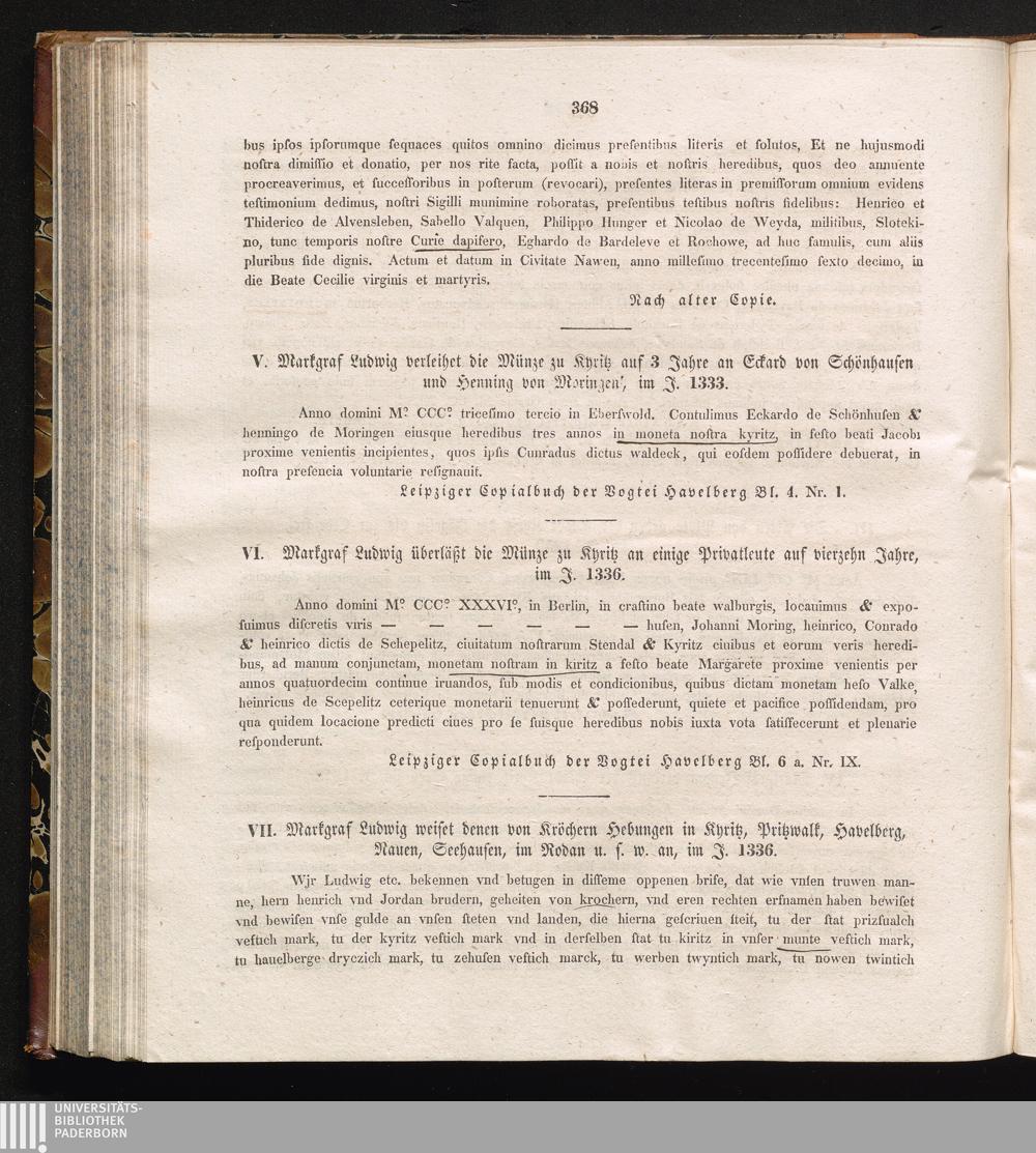 VII. Markgraf Ludwig weiset denen von Kröchern Hebungen in Kyritz, Pritzwalk, Havelberg,[...]