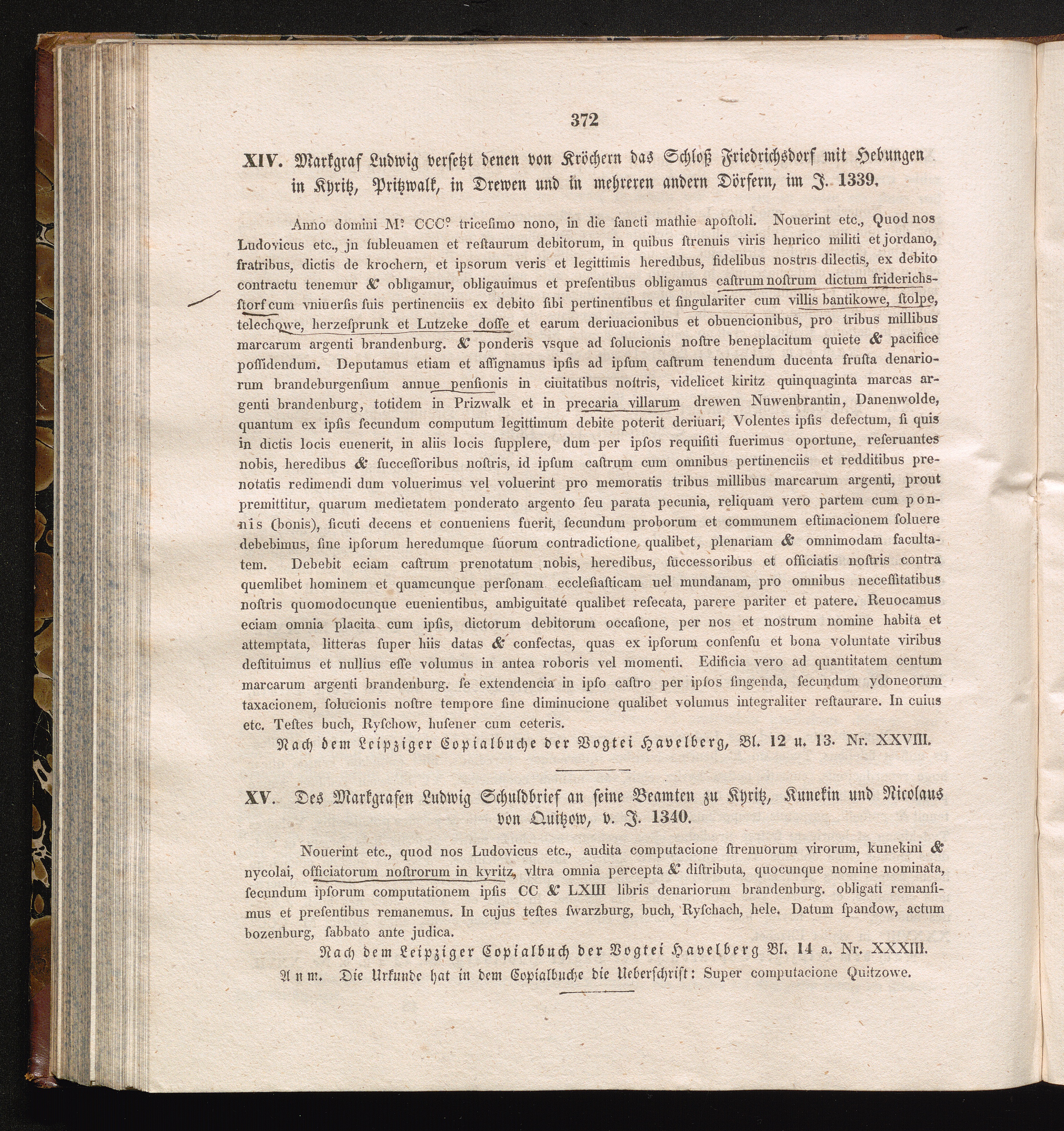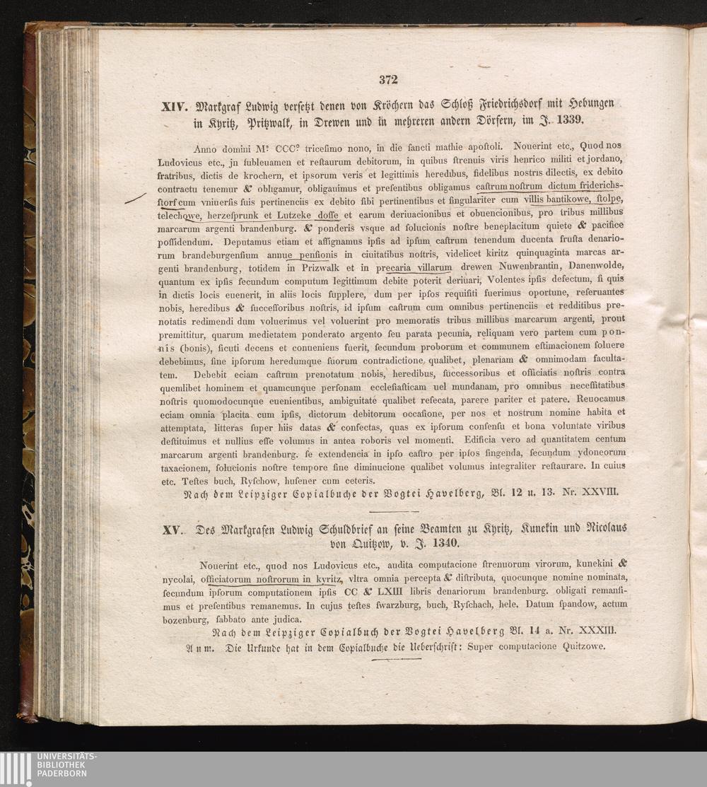 XV. Des Markgrafen Ludwig Schuldbrief an seine Beamten zu Kyritz, Kunekin und Nicolaus[...]