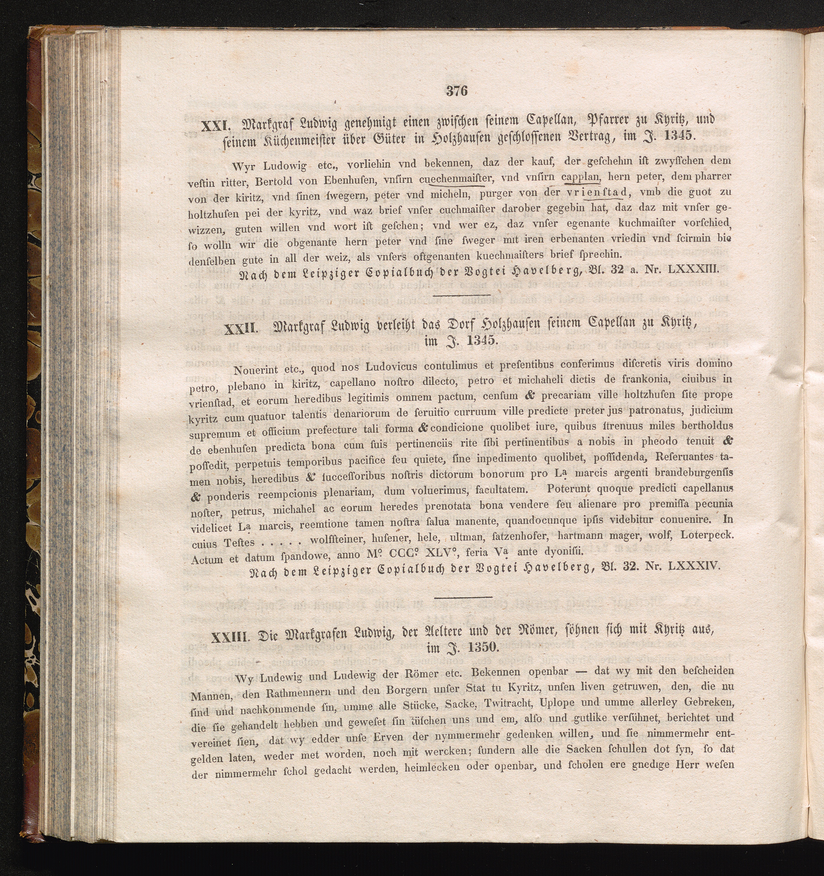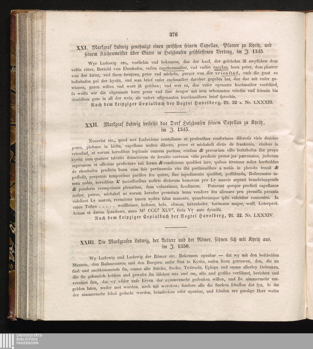 XXII. Die Markgrafen Ludwig, der Aeltere und der Römer, söhnen sich mit Kyritz aus,[...]