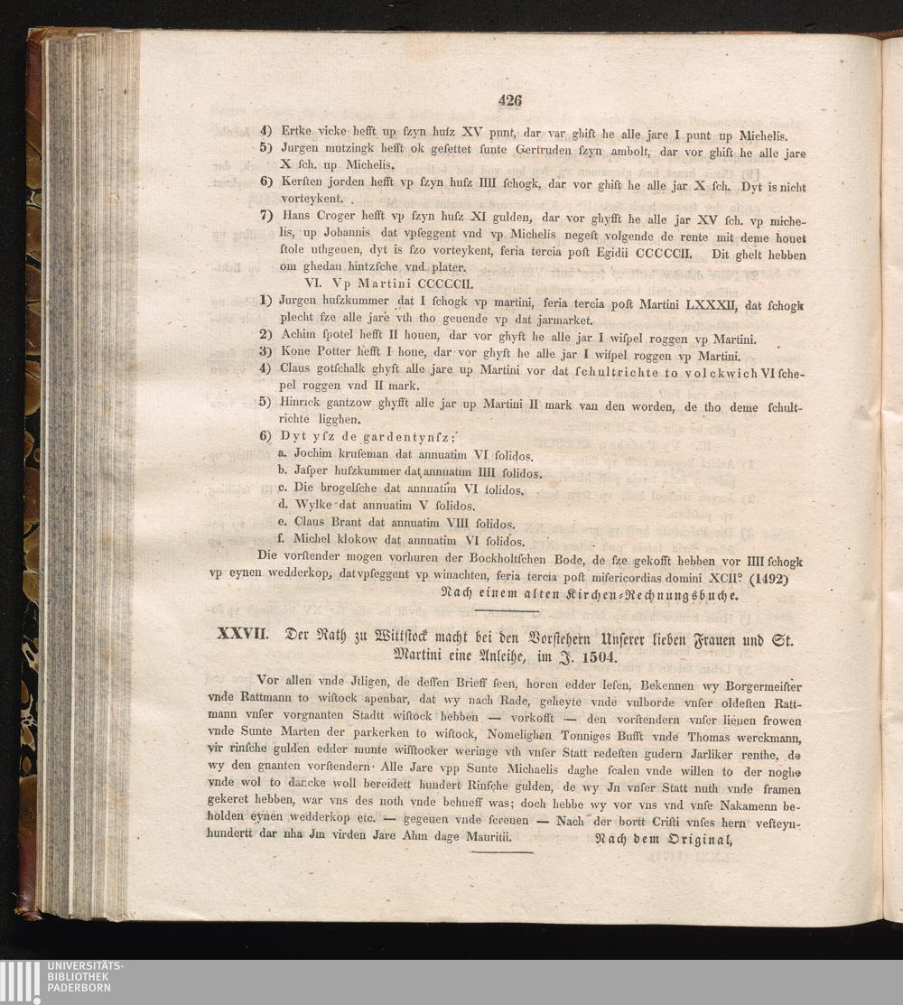 XXVII. Der Rath zu Wittstock macht bei den Vorstehern Unserer lieben Frauen und St.[...]