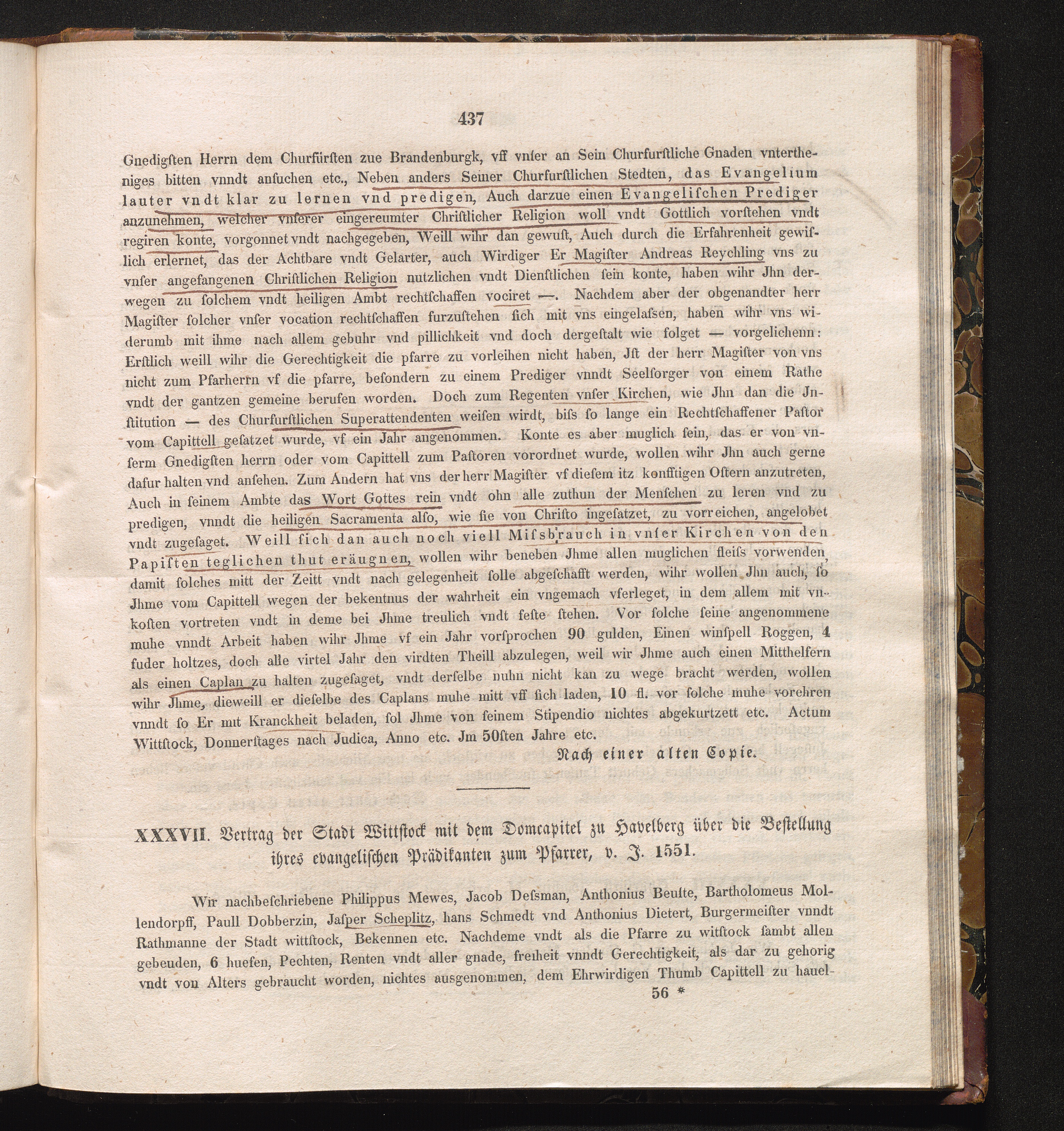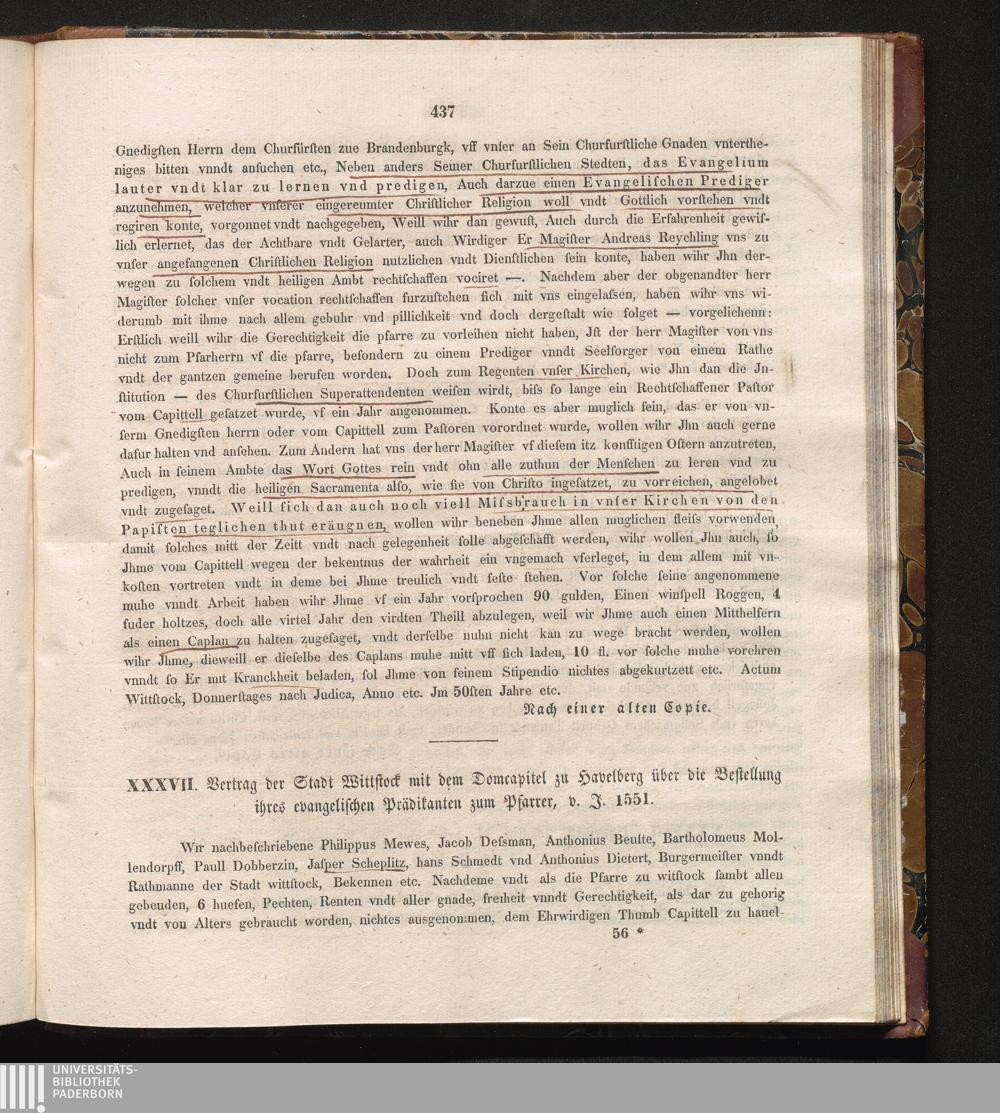 XXXVII. Vertrag der Stadt Wittstock mit dem Domcapitel zu Havelberg über die Bestellung[...]