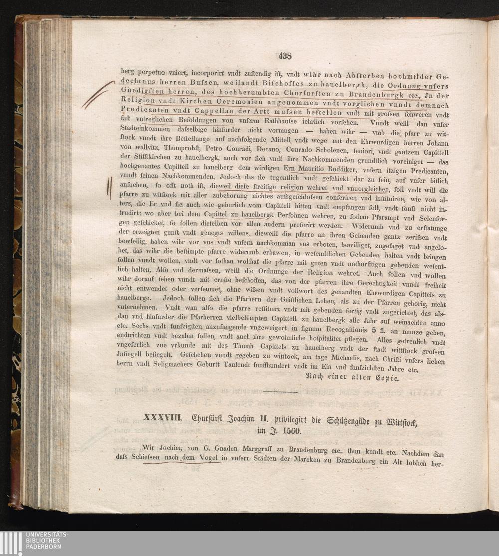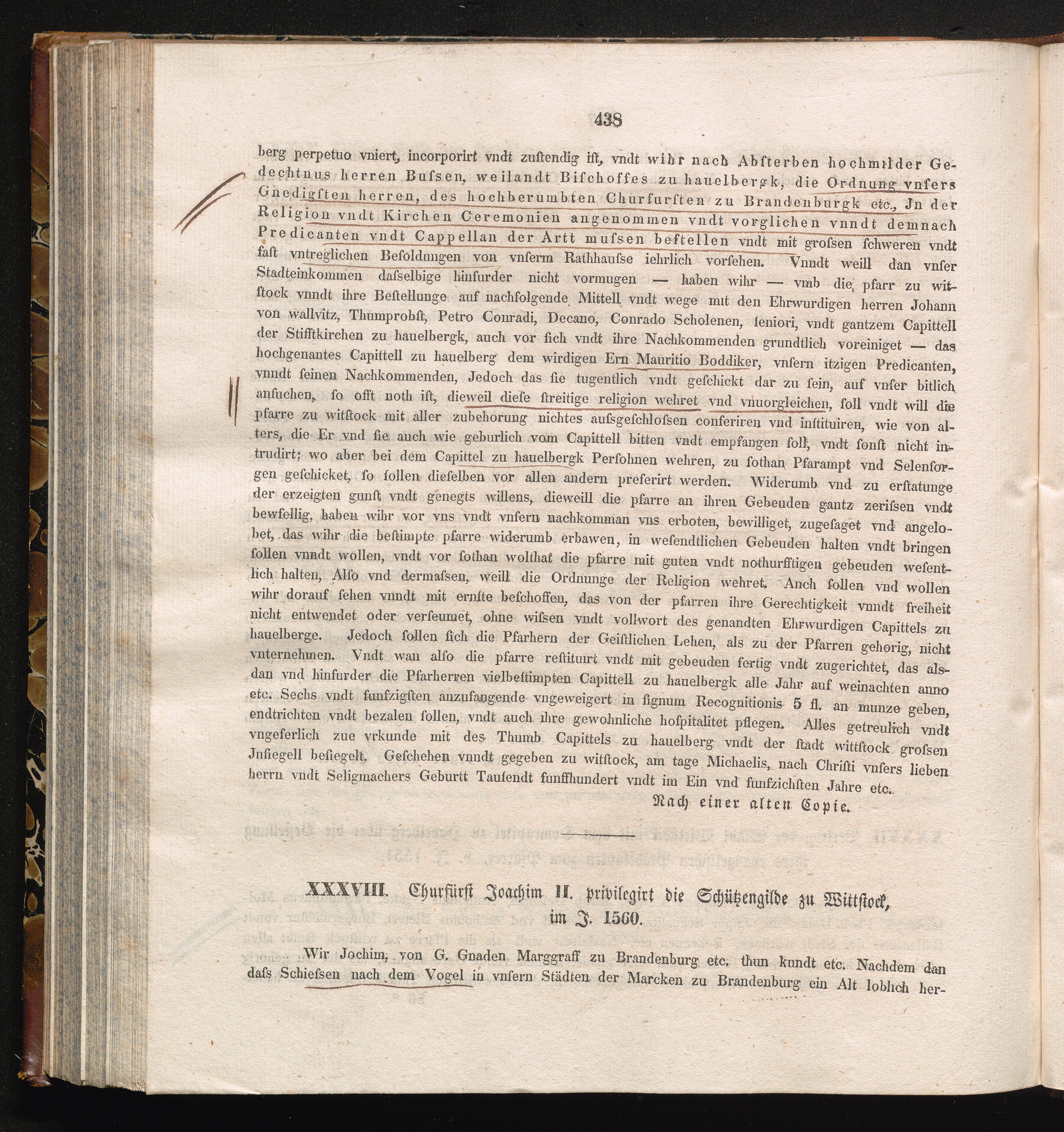 XXXVIII. Churfürst Joachim II. privilegiert die Schützengilde zu Wittstock, im J.[...]