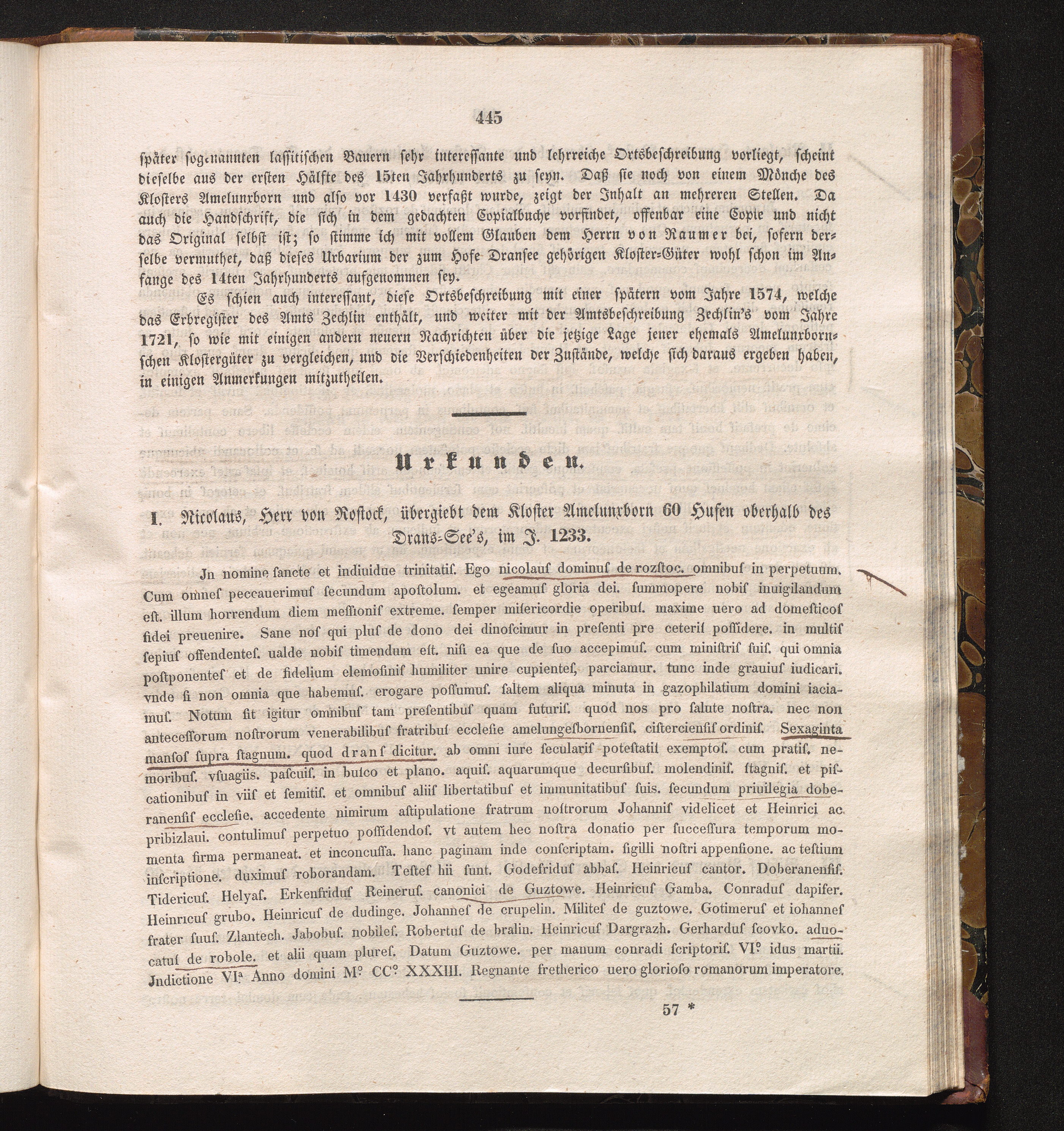 I. Nicolaus, Herr von Rostock, übergiebt dem Kloster Amelunxborn 60 Hufen oberhalb[...]