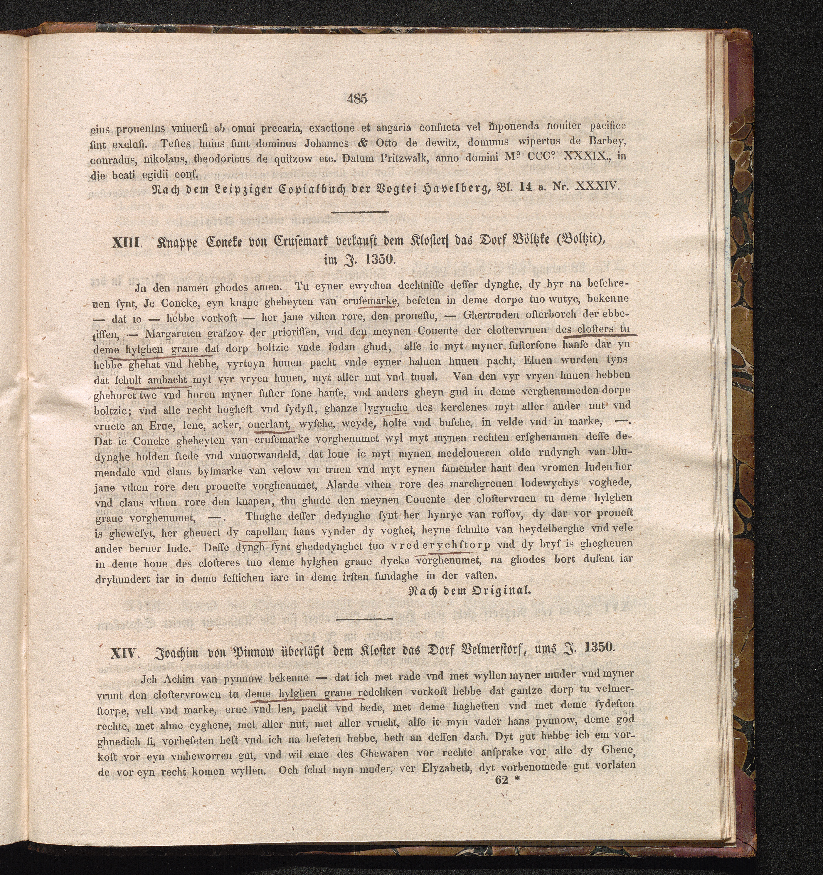 XIV. Joachim von Pinnow überläßt dem Kloster das Dorf Velmerstorf, ums J. 1350.