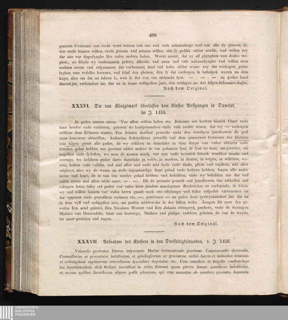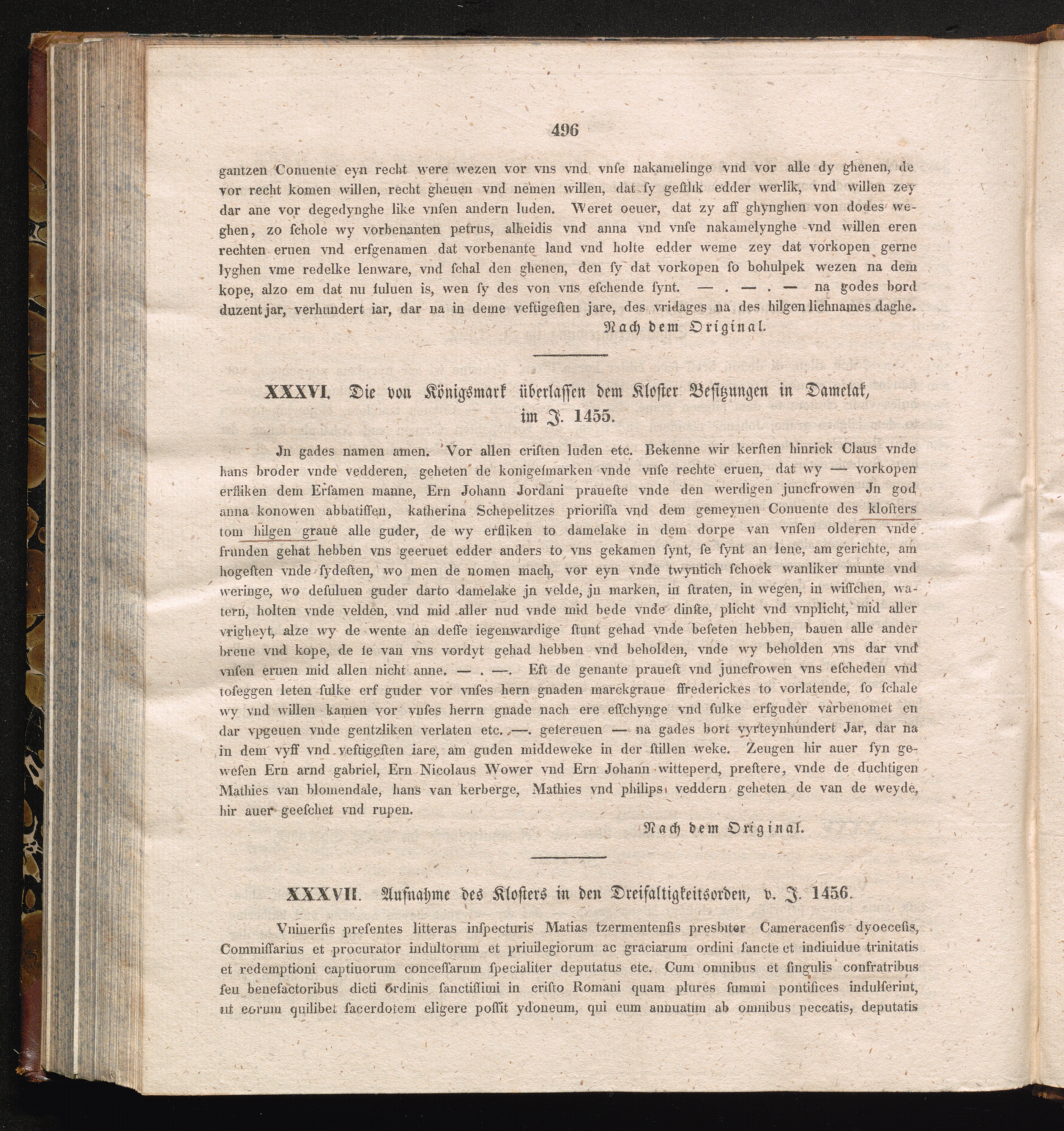 XXXVII. Aufnahme des Klosters in den Dreifaltigkeitsorden, v. J. 1456.