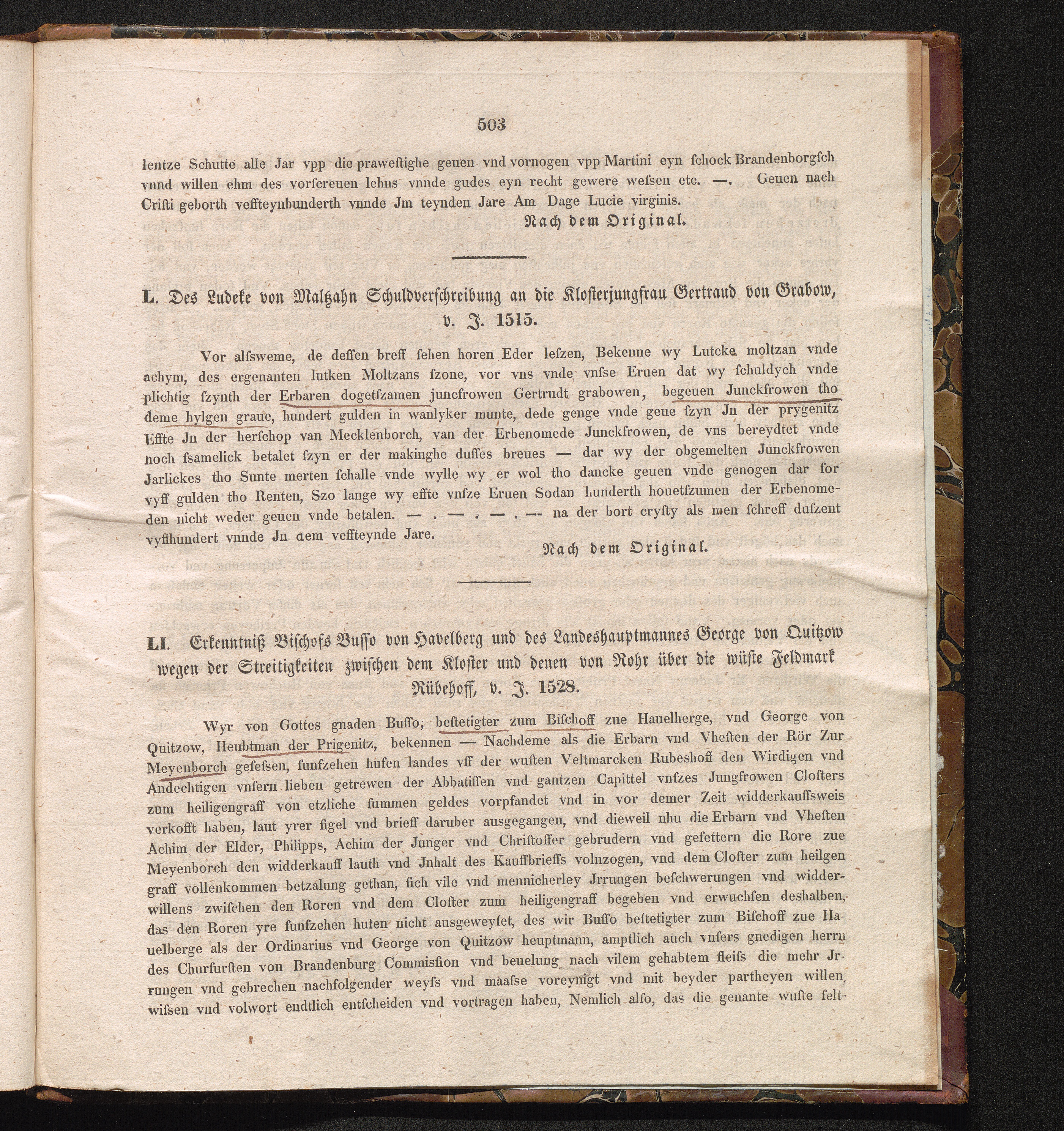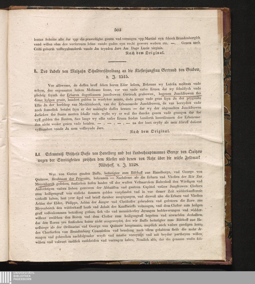 LI. Erkenntniß Bischofs Busso von Havelberg und des Landeshauptmannes George von[...]