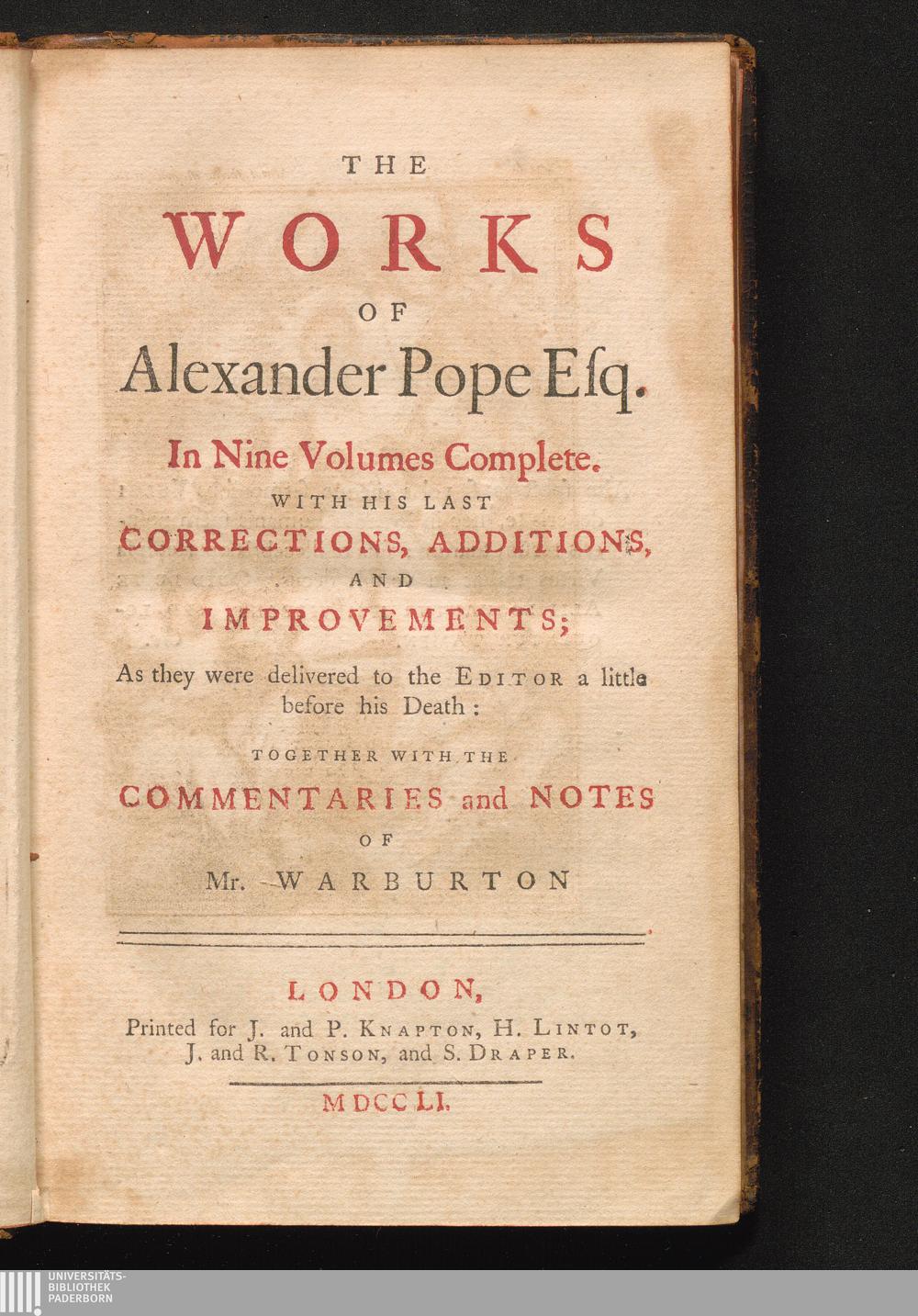 Volume I. (1751) Containing His Juvenile Poems : with his last corrections, additions, and improvements, as they were delivered to the editor a little before his death