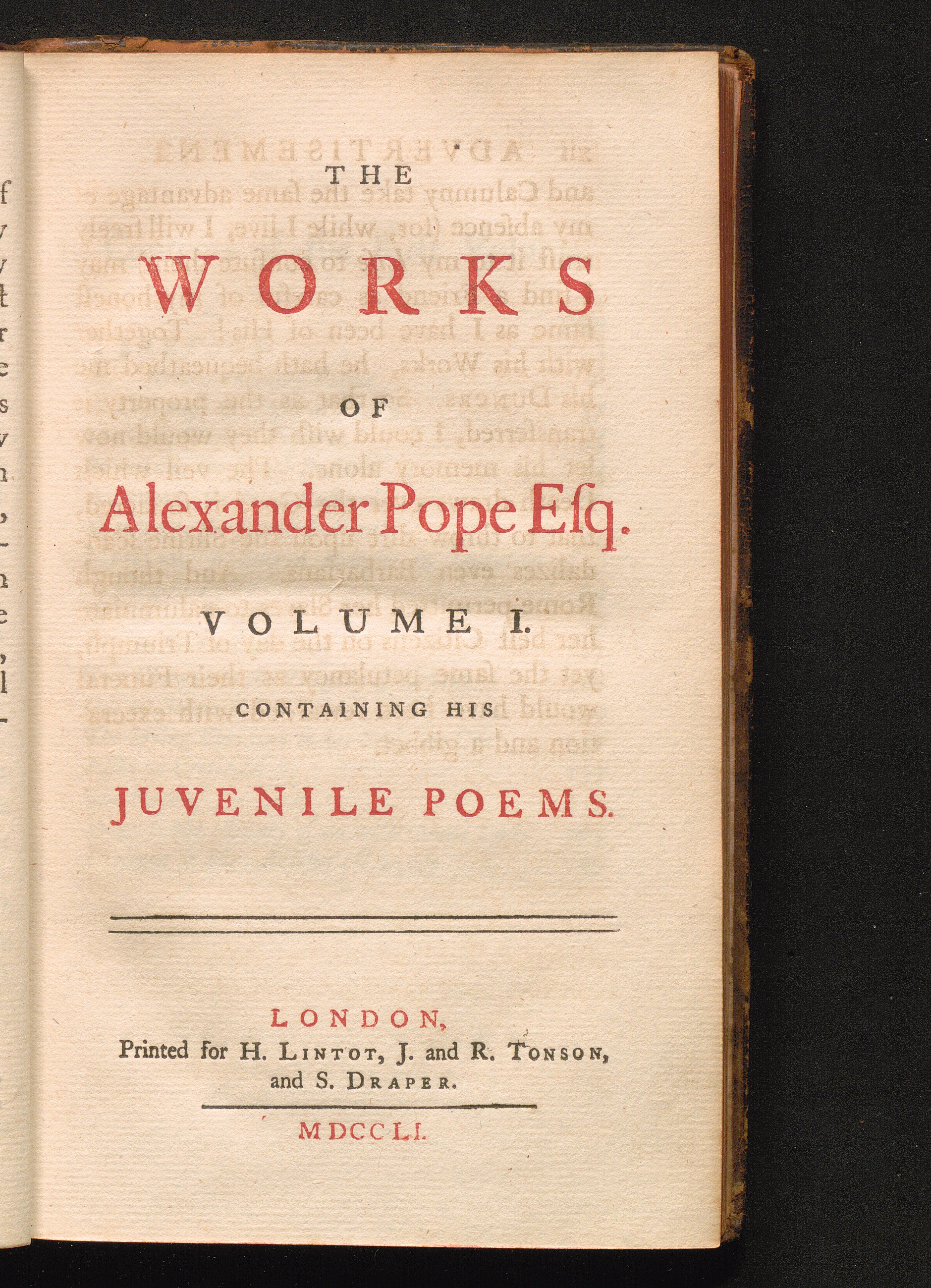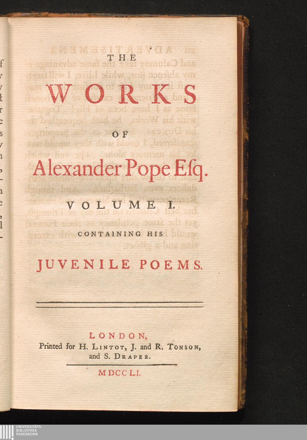 Volume I. (1751) Containing His Juvenile Poems : with his last corrections, additions, and improvements, as they were delivered to the editor a little before his death