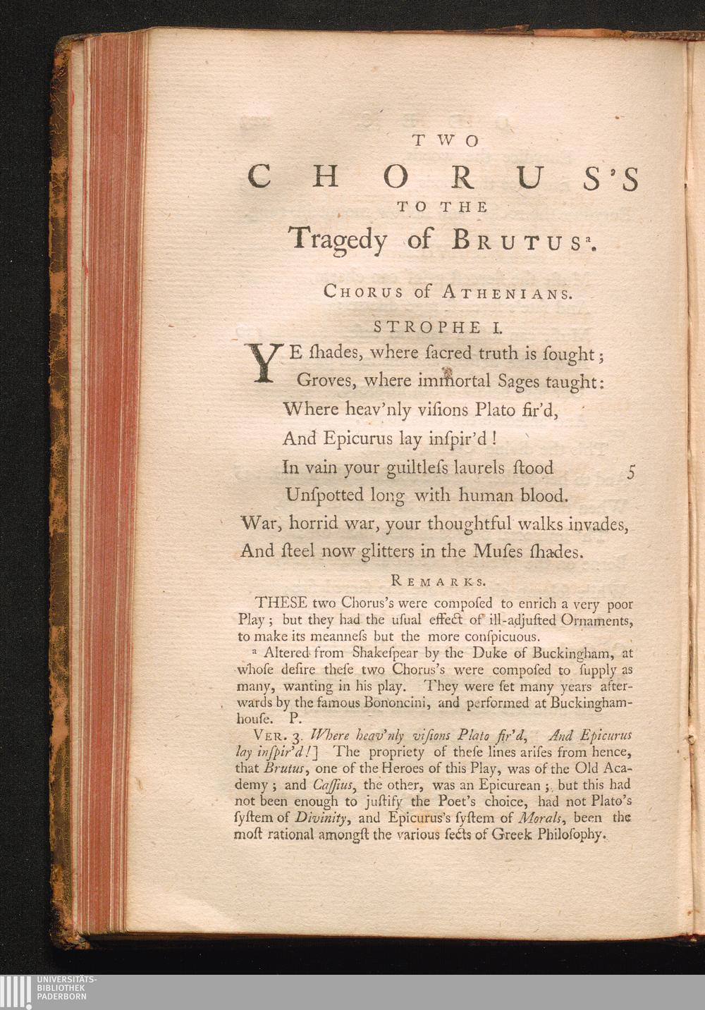 Two Chorus's to the Tragedy of Brutus
